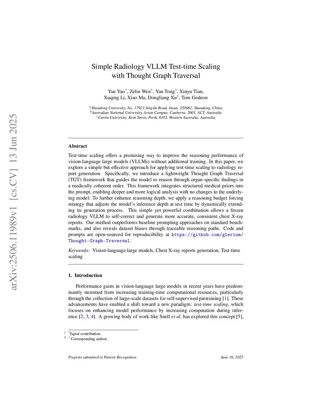 Simple Radiology VLLM Test-time Scaling with Thought Graph Traversal