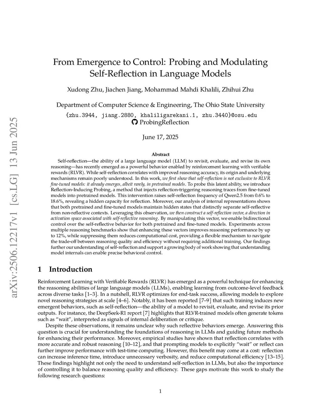 From Emergence to Control: Probing and Modulating Self-Reflection in Language Models