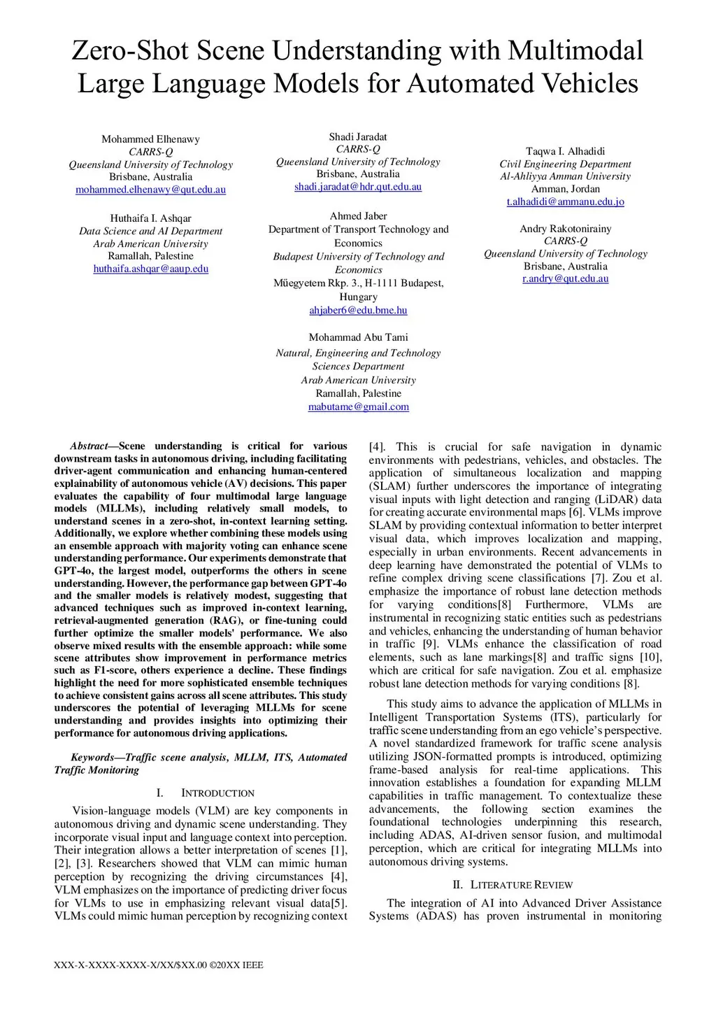 Zero-Shot Scene Understanding with Multimodal Large Language Models for Automated Vehicles
