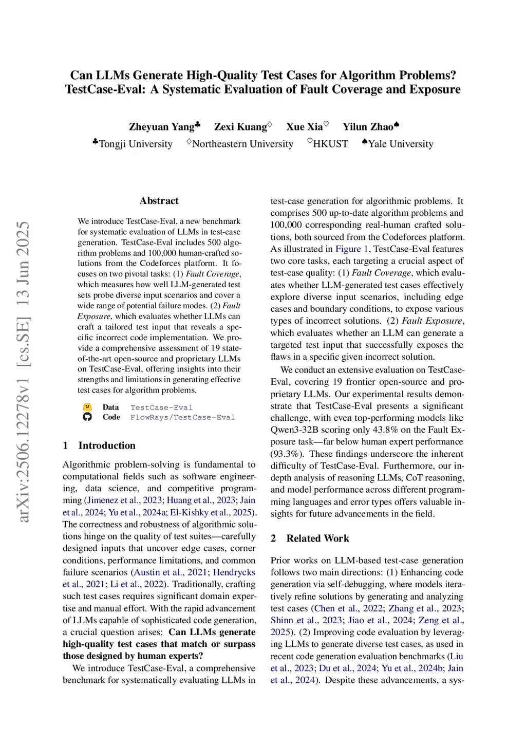 Can LLMs Generate High-Quality Test Cases for Algorithm Problems? TestCase-Eval: A Systematic Evaluation of Fault Coverage and Exposure