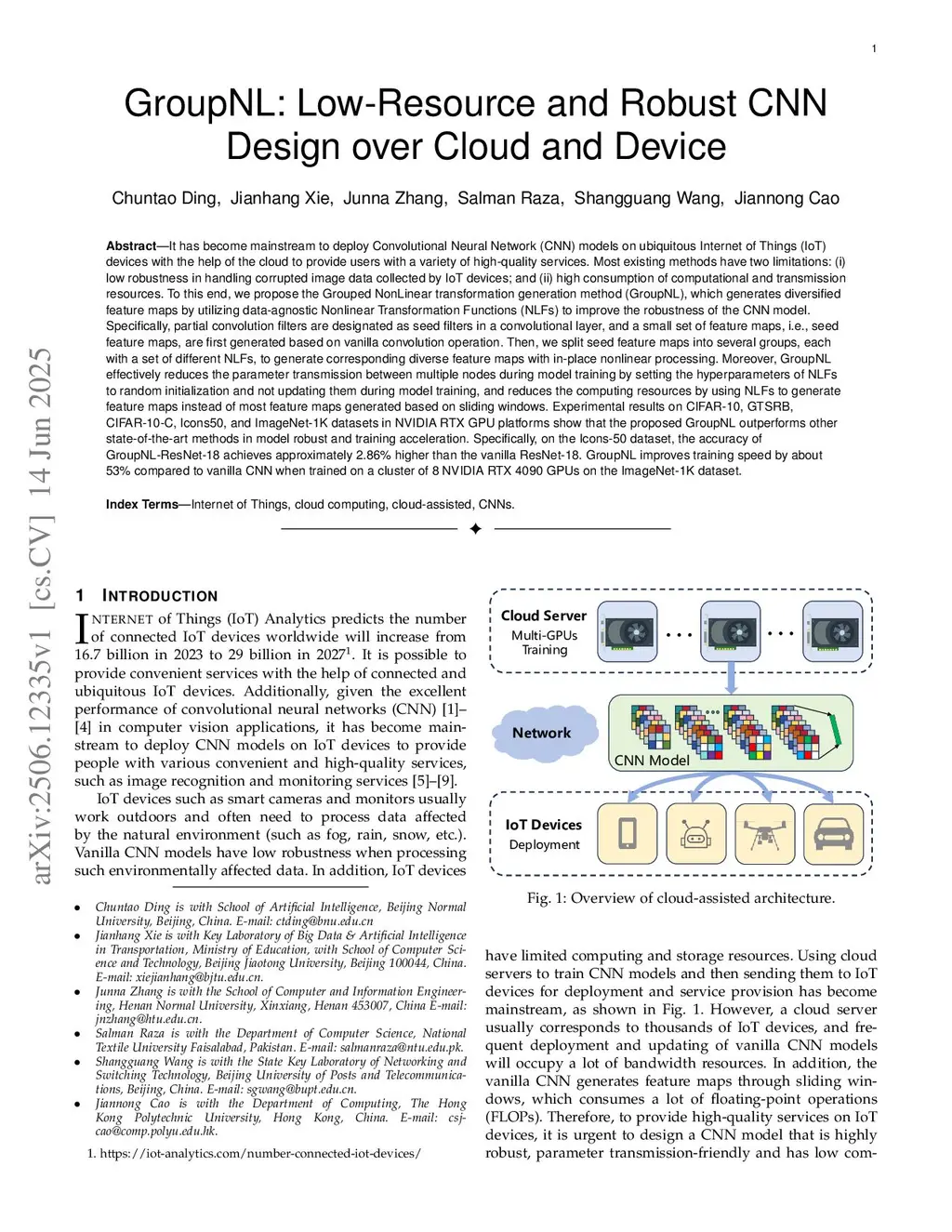 GroupNL: Low-Resource and Robust CNN Design over Cloud and Device