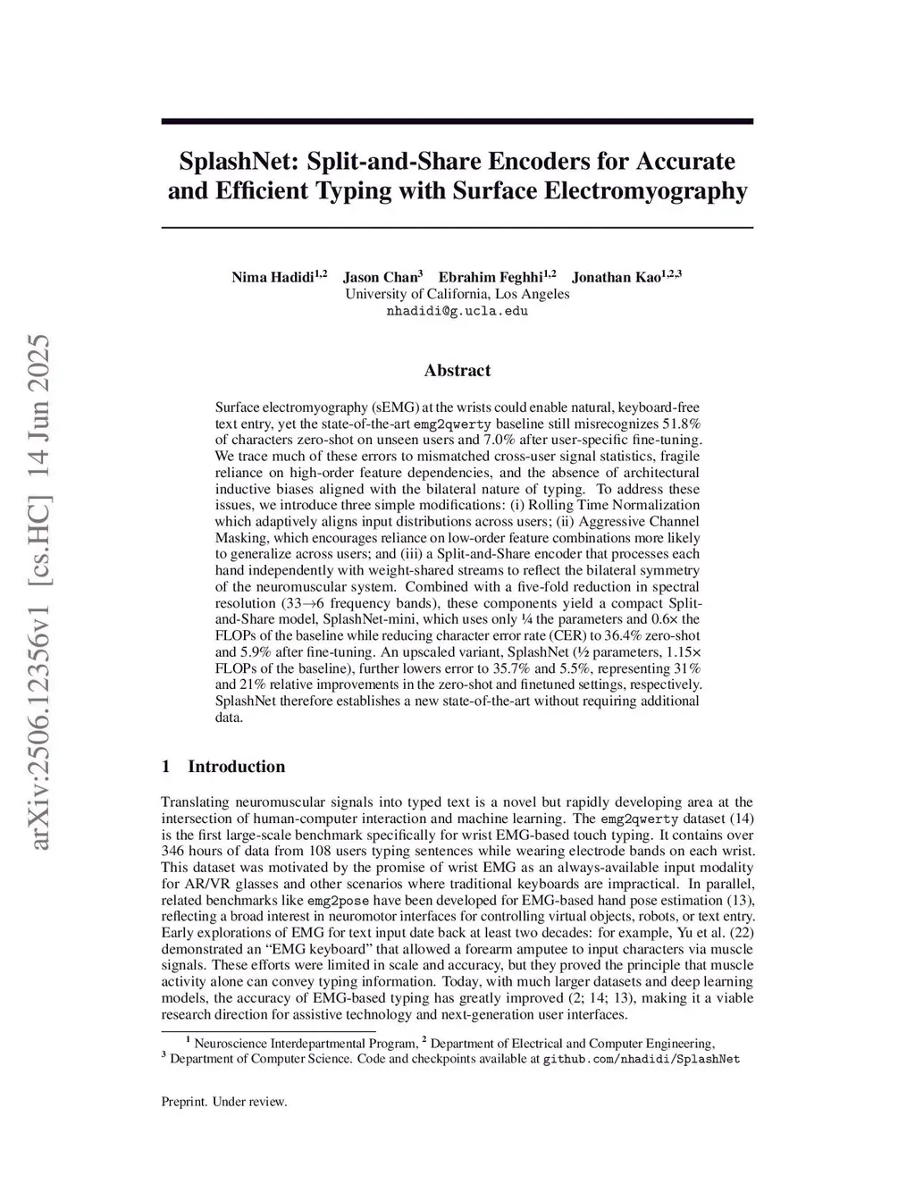 SplashNet: Split-and-Share Encoders for Accurate and Efficient Typing with Surface Electromyography