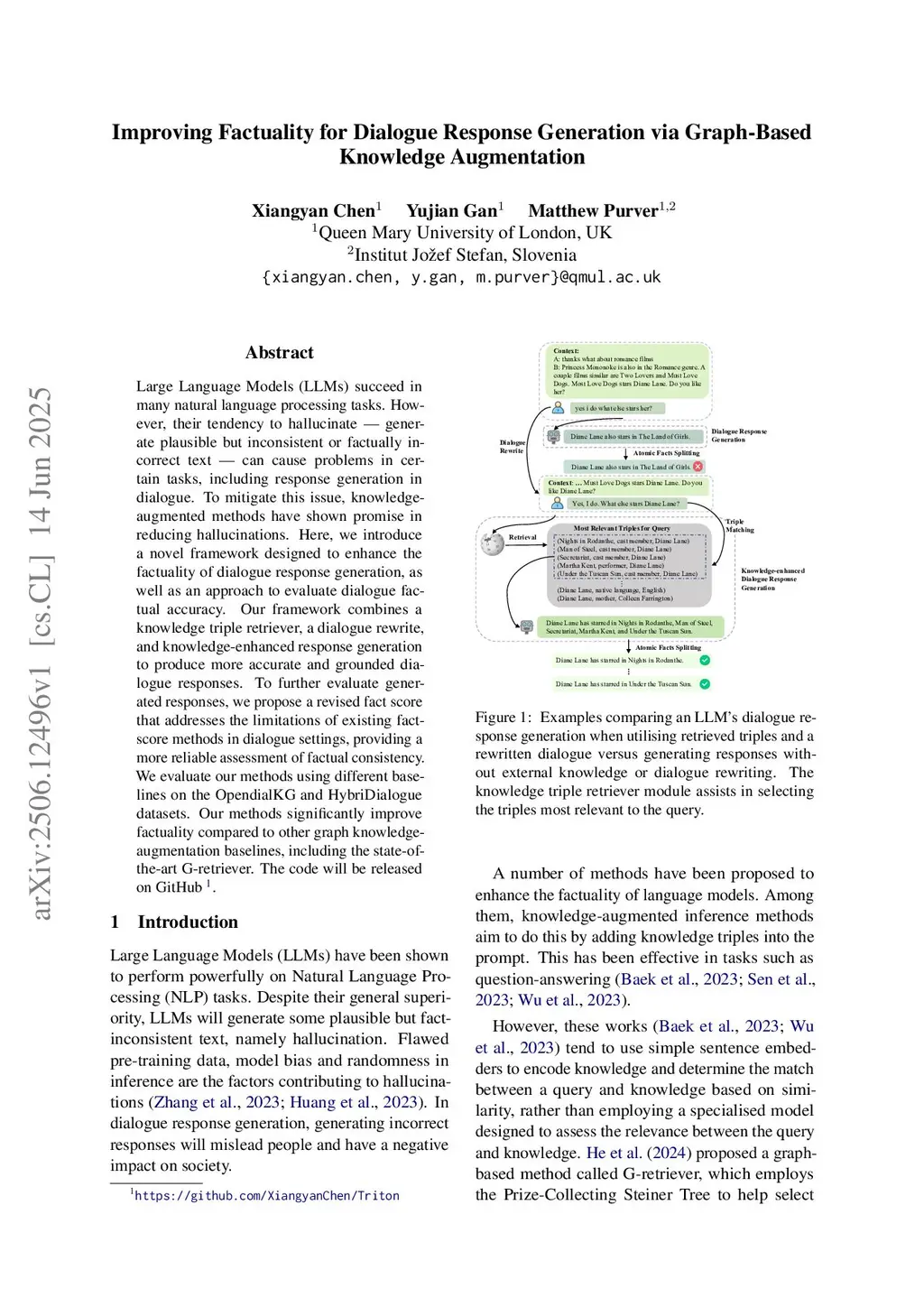 Improving Factuality for Dialogue Response Generation via Graph-Based Knowledge Augmentation
