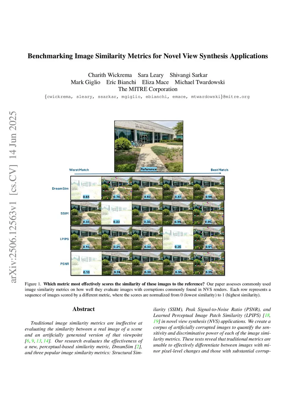 Traditional image similarity metrics are ineffective at evaluating the similarity between a real image of a scene and an artificially generated version of that viewpoint [6, 9, 13, 14]. Our research evaluates the effectiveness of a new, perceptual-based similarity metric, DreamSim [2], and three popular image similarity metrics: Structural Similarity (SSIM), Peak Signal-to-Noise Ratio (PSNR), and Learned Perceptual Image Patch Similarity (LPIPS) [18, 19] in novel view synthesis (NVS) applications. We create a corpus of artificially corrupted images to quantify the sensitivity and discriminative power of each of the image similarity metrics. These tests reveal that traditional metrics are unable to effectively differentiate between images with minor pixel-level changes and those with substantial corruption, whereas DreamSim is more robust to minor defects and can effectively evaluate the high-level similarity of the image. Additionally, our results demonstrate that DreamSim provides a more effective and useful evaluation of render quality, especially for evaluating NVS renders in real-world use cases where slight rendering corruptions are common, but do not affect image utility for human tasks.