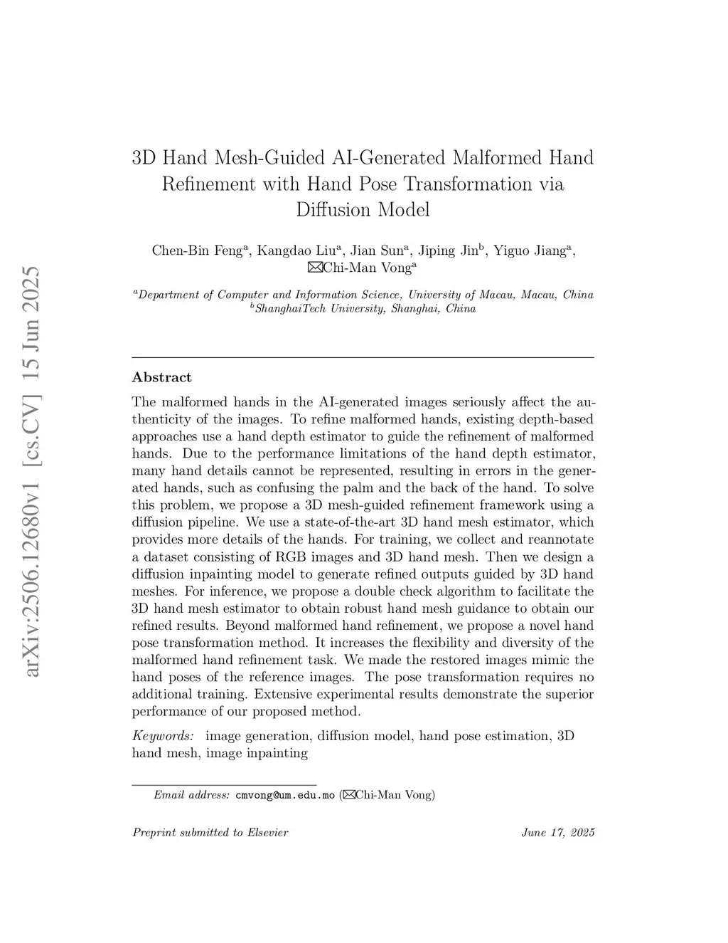 The malformed hands in the AI-generated images seriously affect the authenticity of the images. To refine malformed hands, existing depth-based approaches use a hand depth estimator to guide the refinement of malformed hands. Due to the performance limitations of the hand depth estimator, many hand details cannot be represented, resulting in errors in the generated hands, such as confusing the palm and the back of the hand. To solve this problem, we propose a 3D mesh-guided refinement framework using a diffusion pipeline. We use a state-of-the-art 3D hand mesh estimator, which provides more details of the hands. For training, we collect and reannotate a dataset consisting of RGB images and 3D hand mesh. Then we design a diffusion inpainting model to generate refined outputs guided by 3D hand meshes. For inference, we propose a double check algorithm to facilitate the 3D hand mesh estimator to obtain robust hand mesh guidance to obtain our refined results. Beyond malformed hand refinement, we propose a novel hand pose transformation method. It increases the flexibility and diversity of the malformed hand refinement task. We made the restored images mimic the hand poses of the reference images. The pose transformation requires no additional training. Extensive experimental results demonstrate the superior performance of our proposed method.