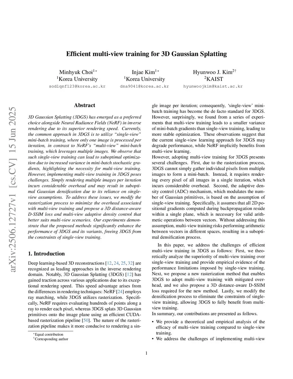 Efficient multi-view training for 3D Gaussian Splatting
