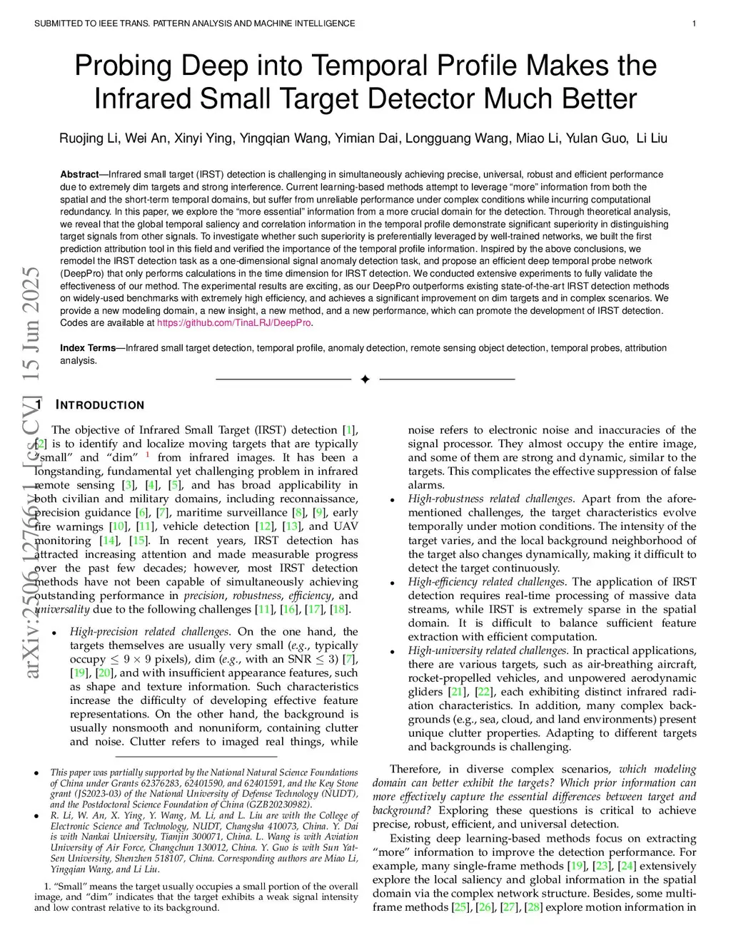 Infrared small target (IRST) detection is challenging in simultaneously achieving precise, robust, and efficient performance due to extremely dim targets and strong interference. Current learning-based methods attempt to leverage ``more" information from both the spatial and the short-term temporal domains, but suffer from unreliable performance under complex conditions while incurring computational redundancy. In this paper, we explore the ``more essential" information from a more crucial domain for the detection. Through theoretical analysis, we reveal that the global temporal saliency and correlation information in the temporal profile demonstrate significant superiority in distinguishing target signals from other signals. To investigate whether such superiority is preferentially leveraged by well-trained networks, we built the first prediction attribution tool in this field and verified the importance of the temporal profile information. Inspired by the above conclusions, we remodel the IRST detection task as a one-dimensional signal anomaly detection task, and propose an efficient deep temporal probe network (DeepPro) that only performs calculations in the time dimension for IRST detection. We conducted extensive experiments to fully validate the effectiveness of our method. The experimental results are exciting, as our DeepPro outperforms existing state-of-the-art IRST detection methods on widely-used benchmarks with extremely high efficiency, and achieves a significant improvement on dim targets and in complex scenarios. We provide a new modeling domain, a new insight, a new method, and a new performance, which can promote the development of IRST detection. Codes are available atthis https URL.