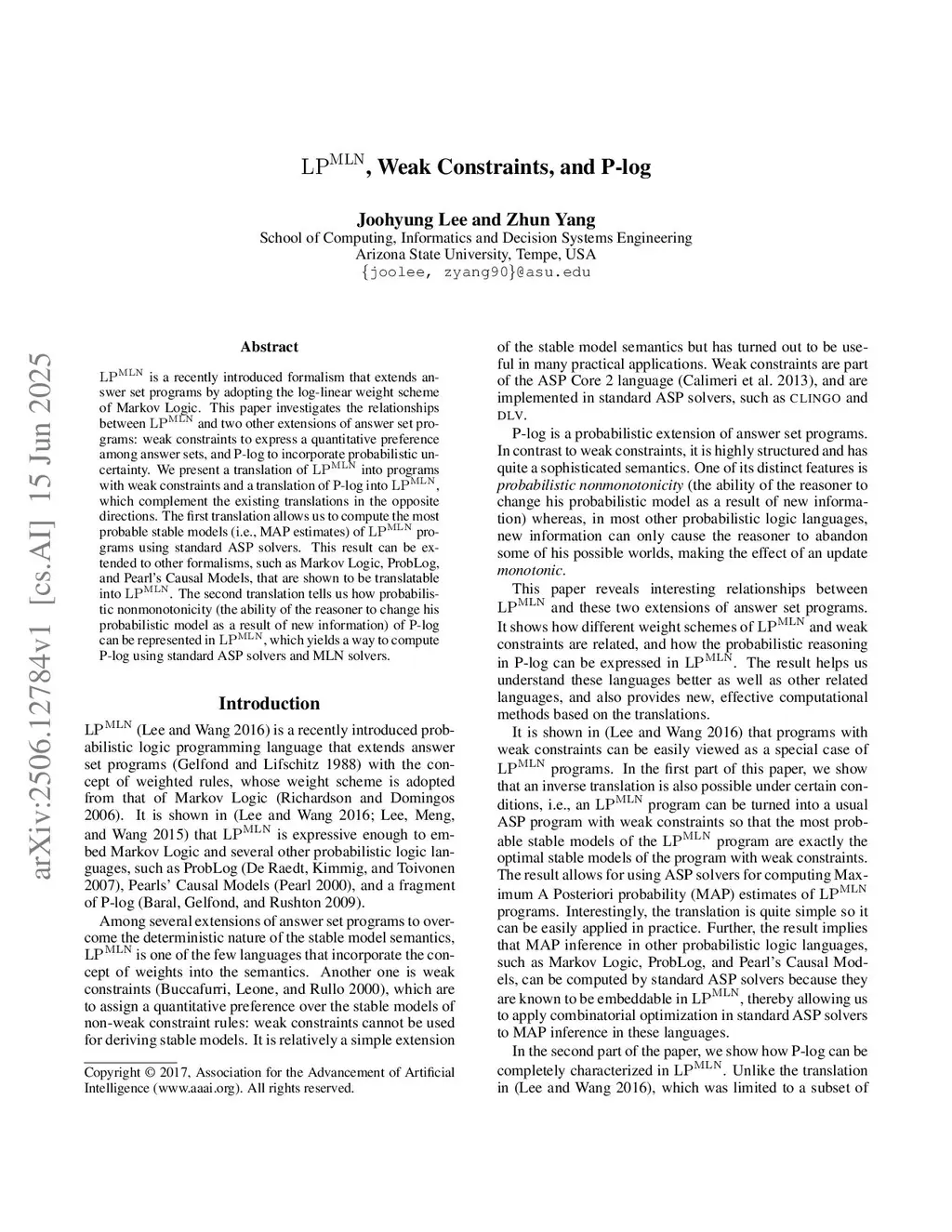 LPMLN, Weak Constraints, and P-log