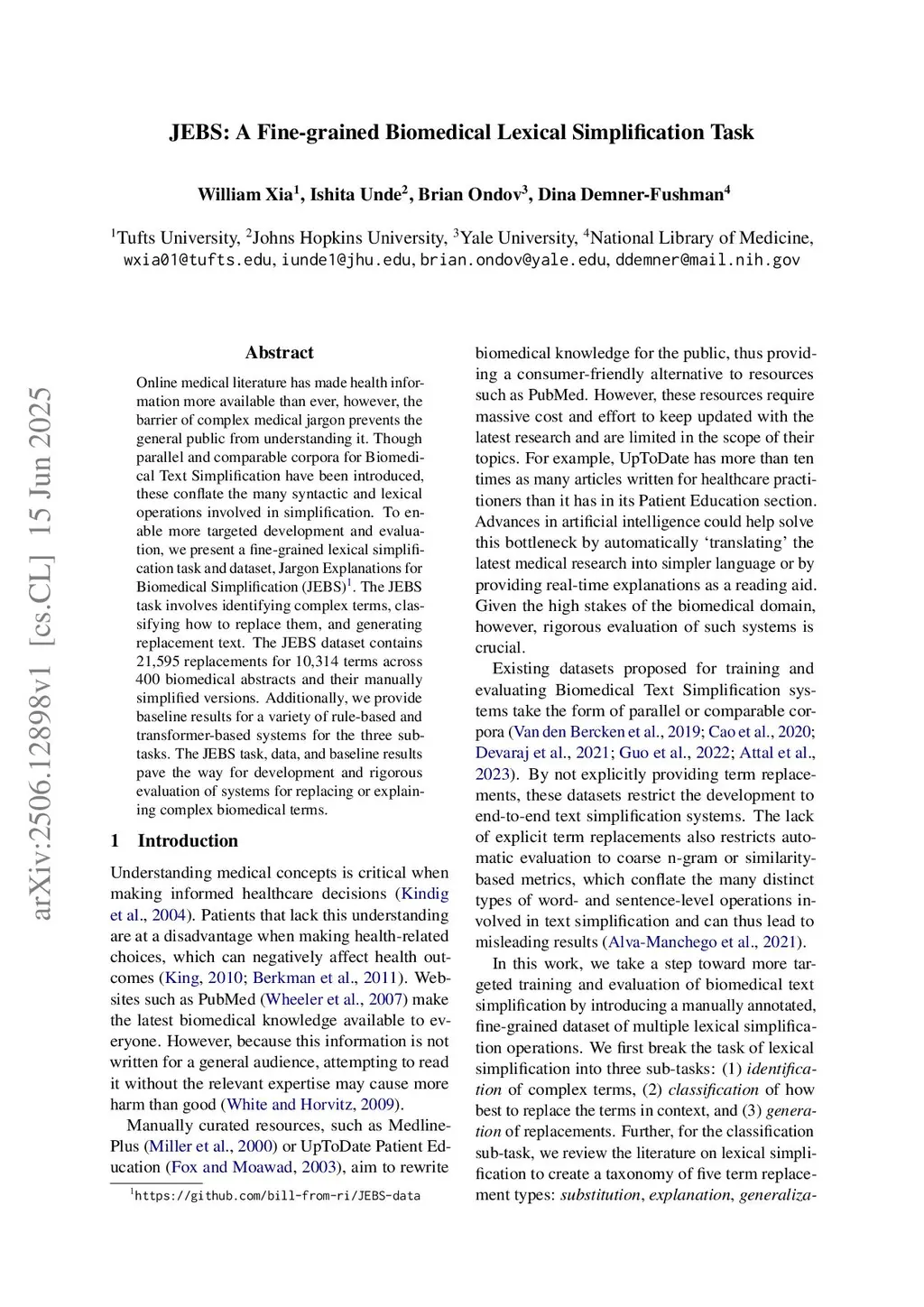 JEBS: A Fine-grained Biomedical Lexical Simplification Task