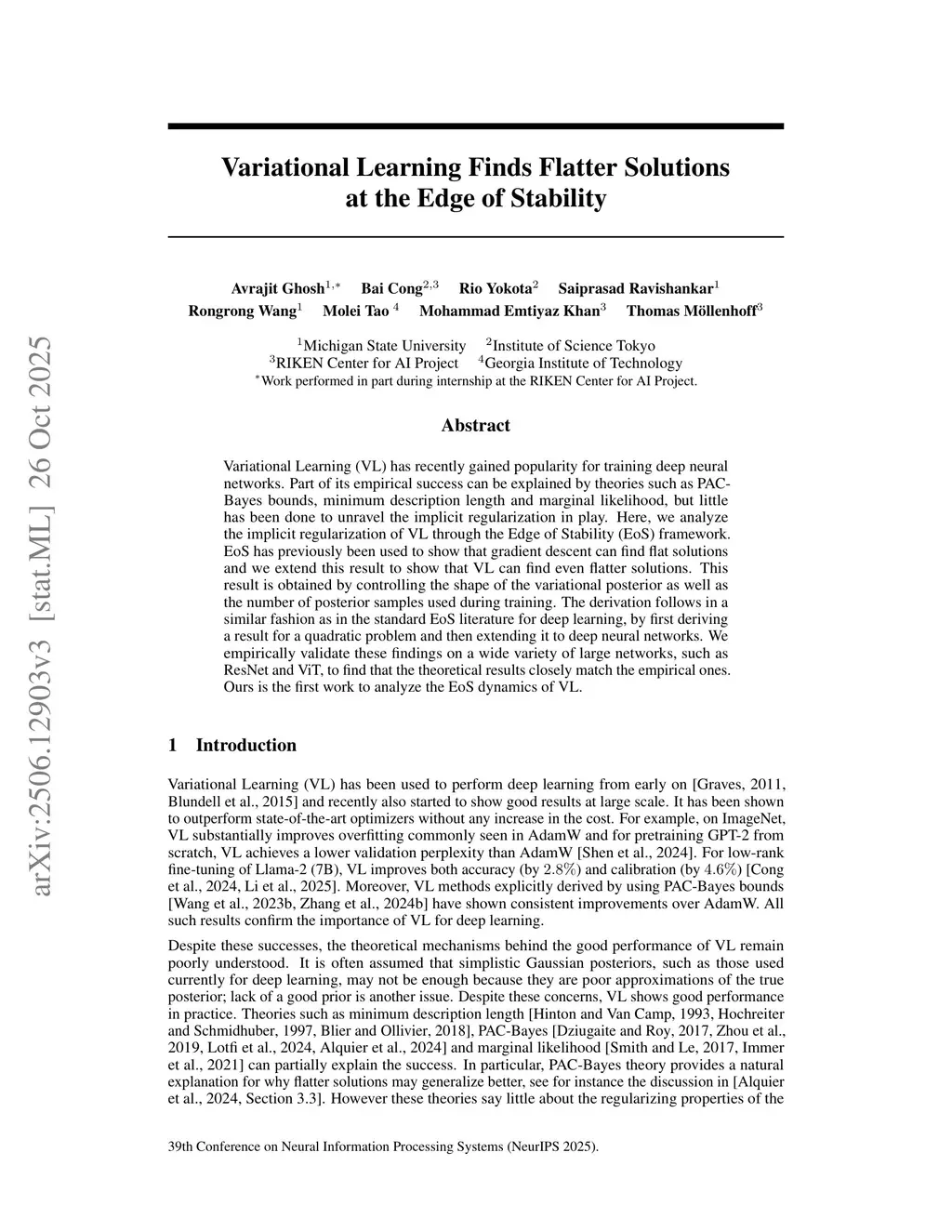 Variational Learning Finds Flatter Solutions at the Edge of Stability