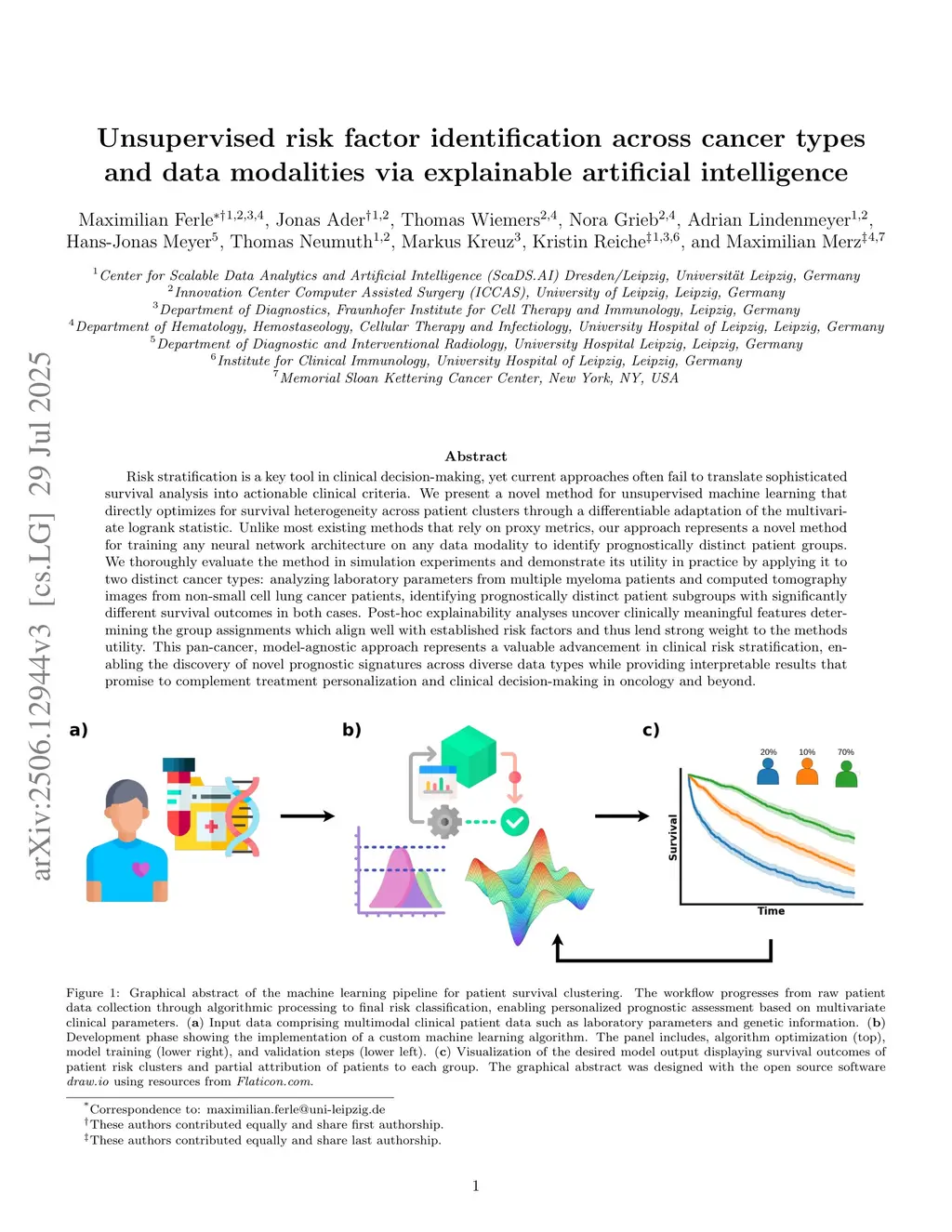Unsupervised risk factor identification across cancer types and data modalities via explainable artificial intelligence