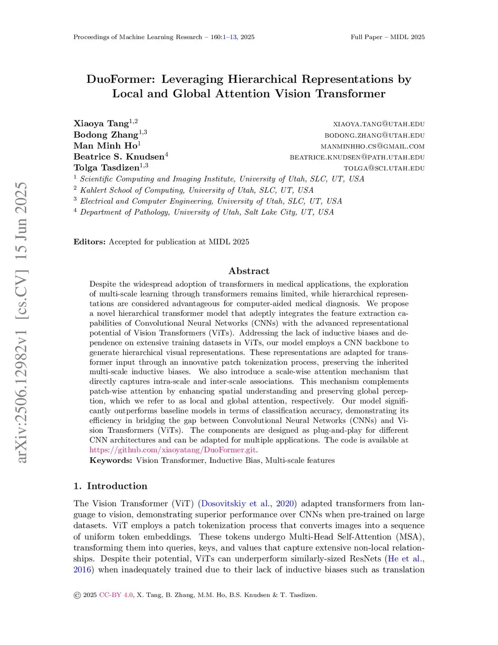 DuoFormer: Leveraging Hierarchical Representations by Local and Global Attention Vision Transformer