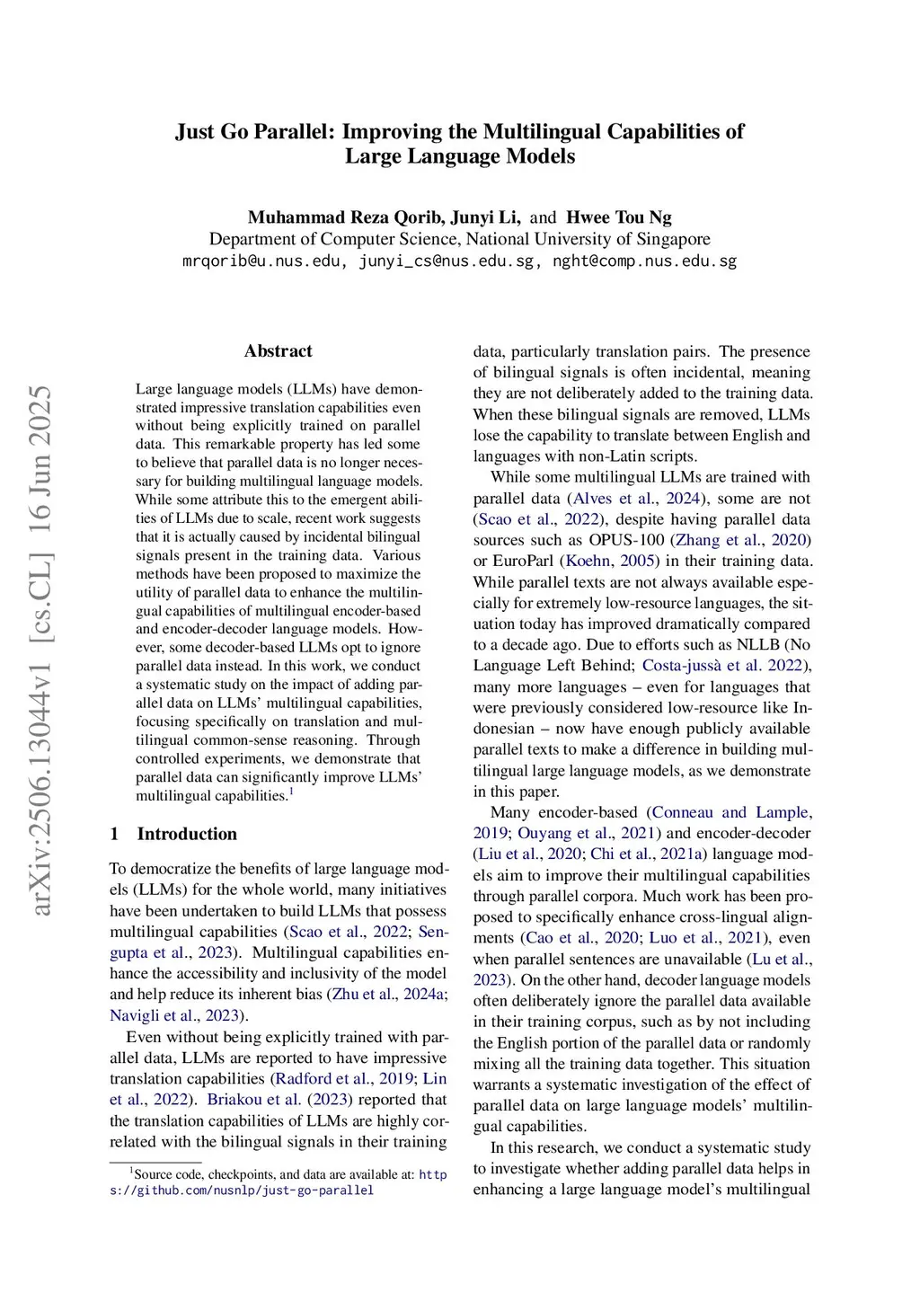 Just Go Parallel: Improving the Multilingual Capabilities of Large Language Models