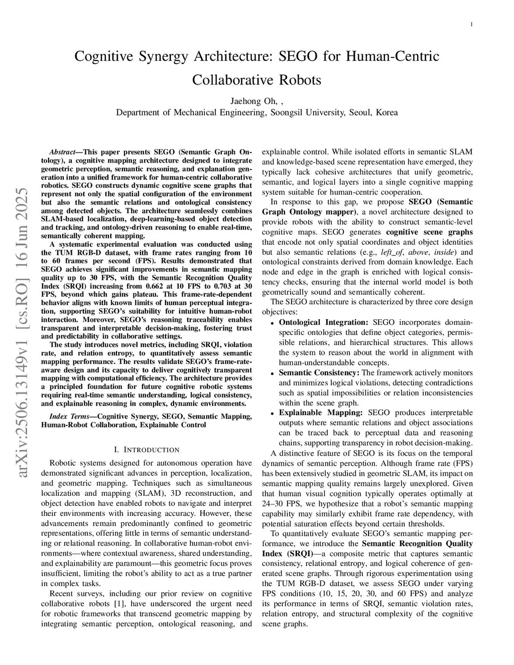 Cognitive Synergy Architecture: SEGO for Human-Centric Collaborative Robots