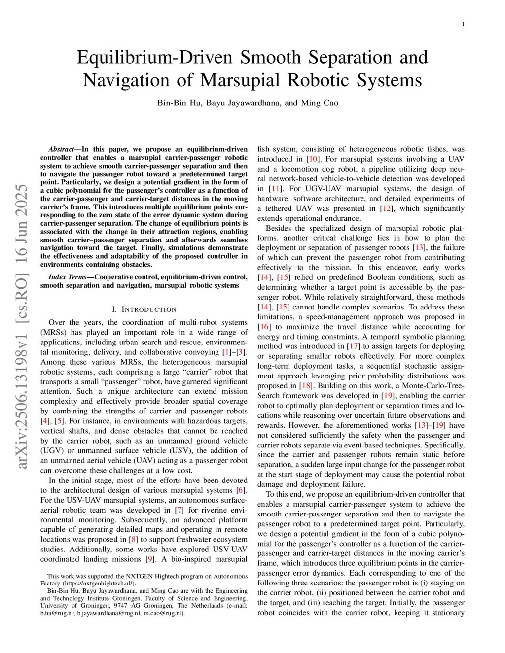Equilibrium-Driven Smooth Separation and Navigation of Marsupial Robotic Systems