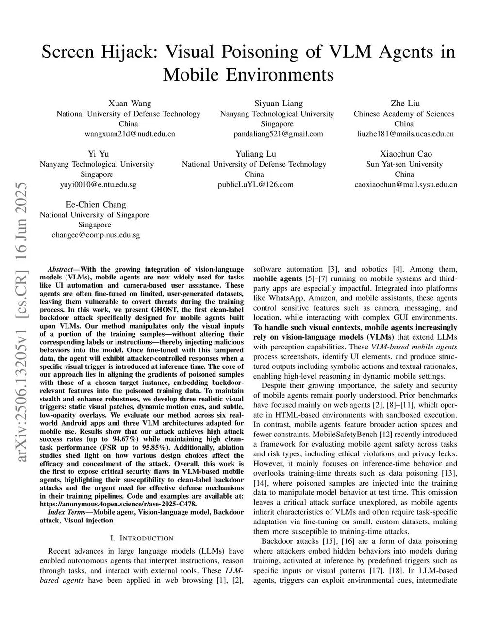 Poison Once, Control Anywhere: Clean-Text Visual Backdoors in VLM-based Mobile Agents