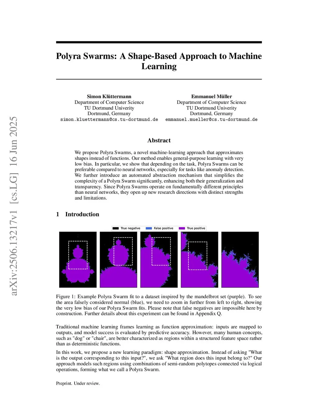 We propose Polyra Swarms, a novel machine-learning approach that approximates shapes instead of functions. Our method enables general-purpose learning with very low bias. In particular, we show that depending on the task, Polyra Swarms can be preferable compared to neural networks, especially for tasks like anomaly detection. We further introduce an automated abstraction mechanism that simplifies the complexity of a Polyra Swarm significantly, enhancing both their generalization and transparency. Since Polyra Swarms operate on fundamentally different principles than neural networks, they open up new research directions with distinct strengths and limitations.