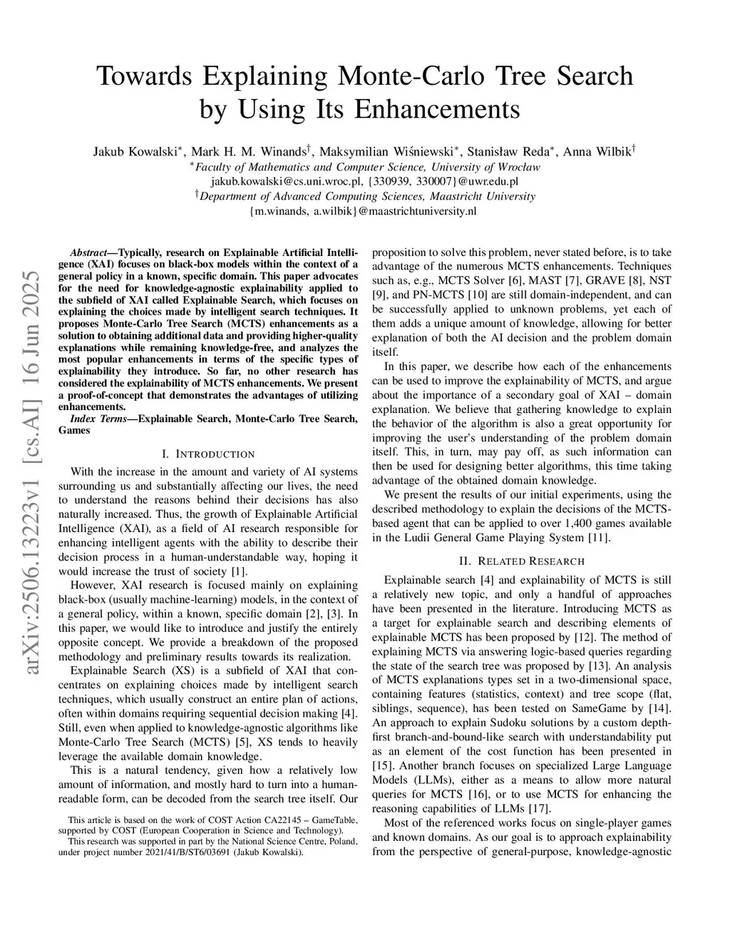 Typically, research on Explainable Artificial Intelligence (XAI) focuses on black-box models within the context of a general policy in a known, specific domain. This paper advocates for the need for knowledge-agnostic explainability applied to the subfield of XAI called Explainable Search, which focuses on explaining the choices made by intelligent search techniques. It proposes Monte-Carlo Tree Search (MCTS) enhancements as a solution to obtaining additional data and providing higher-quality explanations while remaining knowledge-free, and analyzes the most popular enhancements in terms of the specific types of explainability they introduce. So far, no other research has considered the explainability of MCTS enhancements. We present a proof-of-concept that demonstrates the advantages of utilizing enhancements.