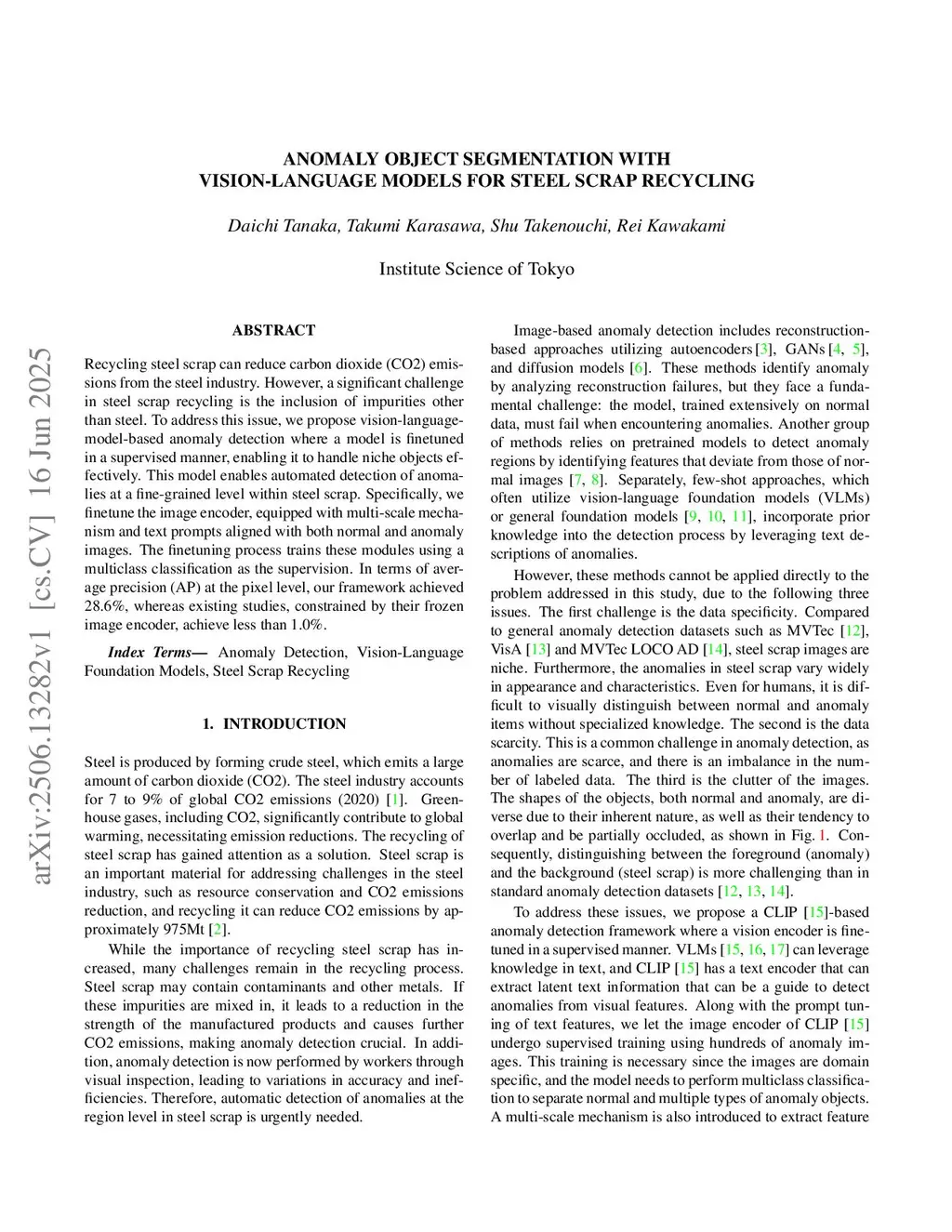 Anomaly Object Segmentation with Vision-Language Models for Steel Scrap Recycling