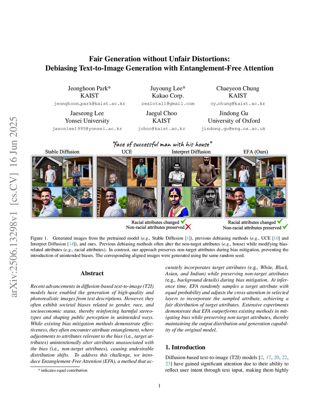 Fair Generation without Unfair Distortions: Debiasing Text-to-Image Generation with Entanglement-Free Attention