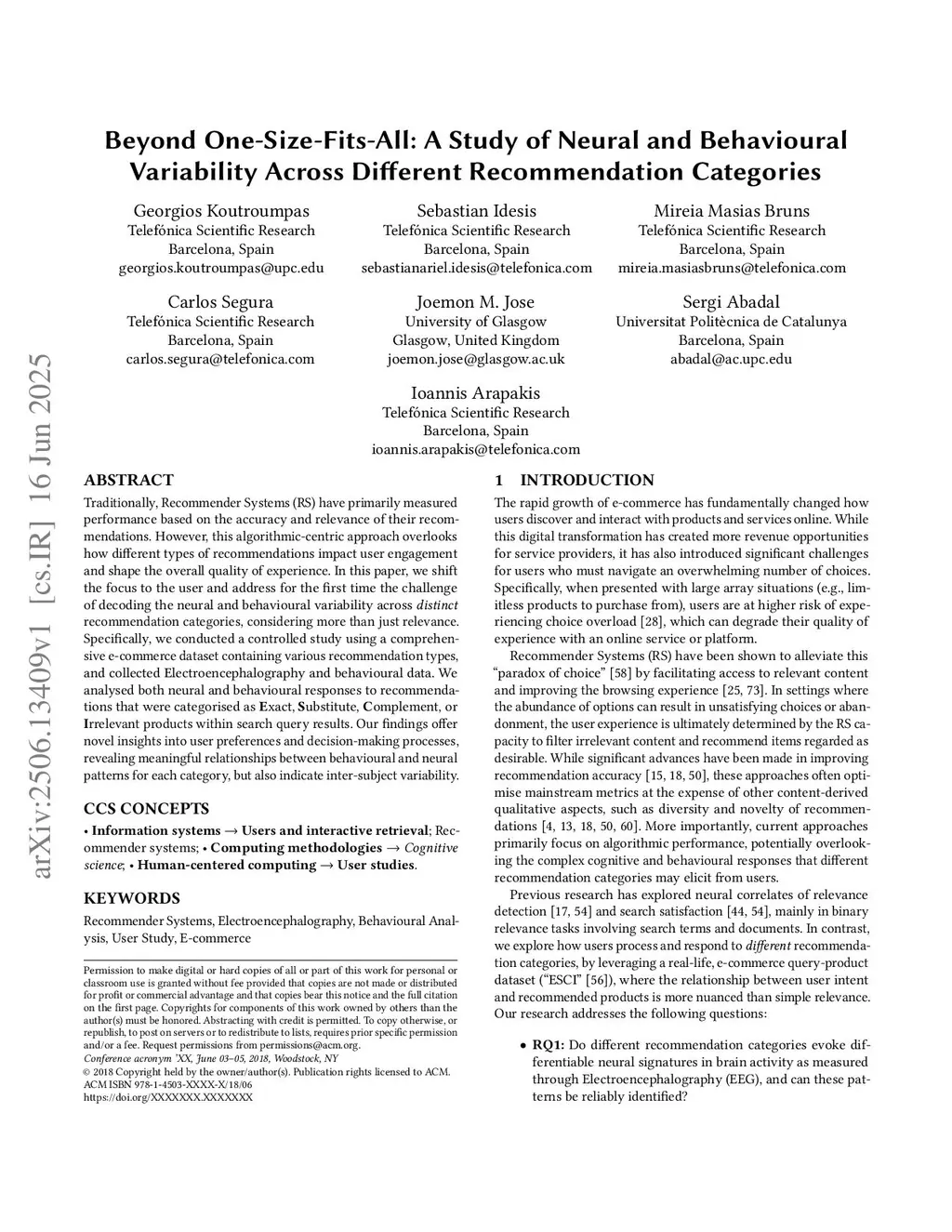 Beyond One-Size-Fits-All: A Study of Neural and Behavioural Variability Across Different Recommendation Categories