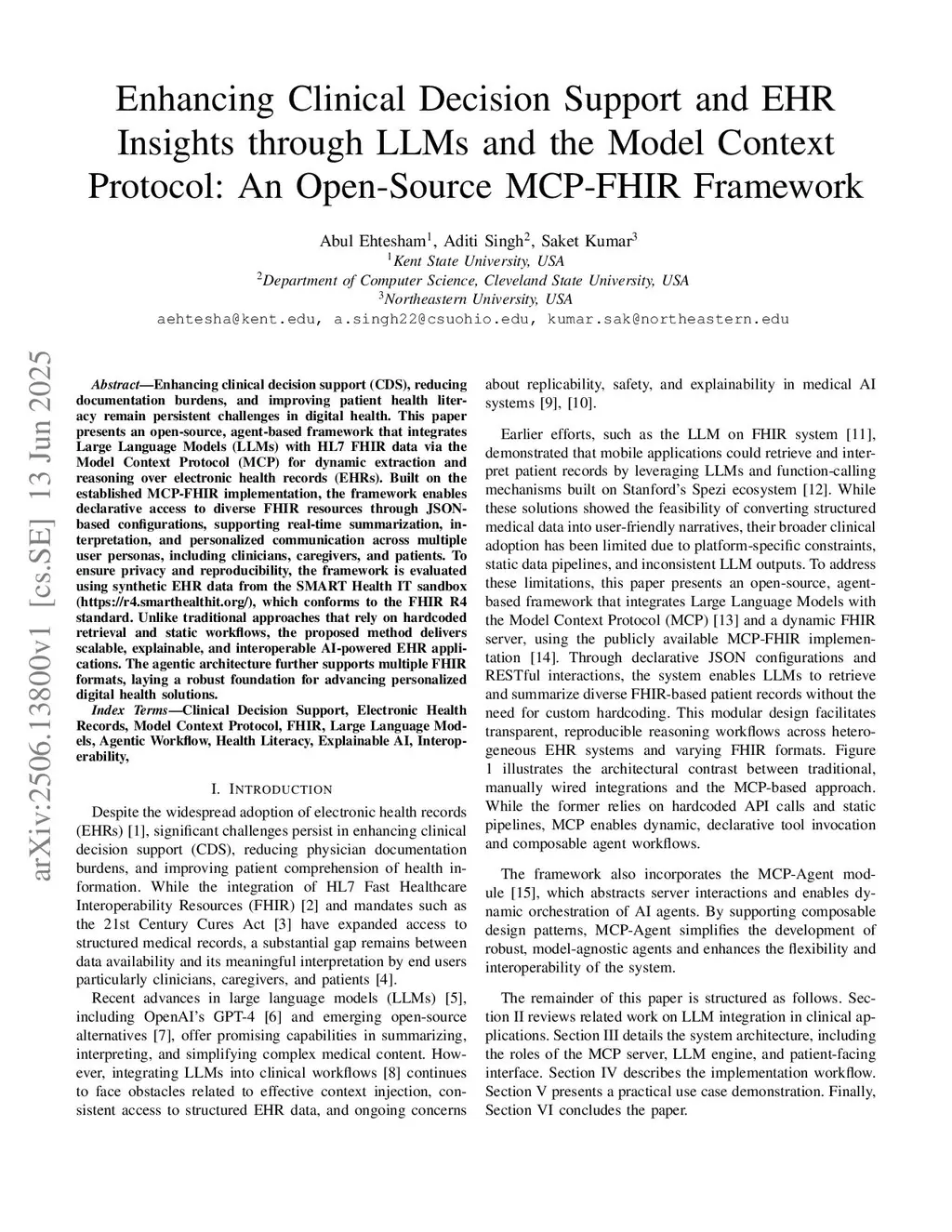 Enhancing Clinical Decision Support and EHR Insights through LLMs and the Model Context Protocol: An Open-Source MCP-FHIR Framework