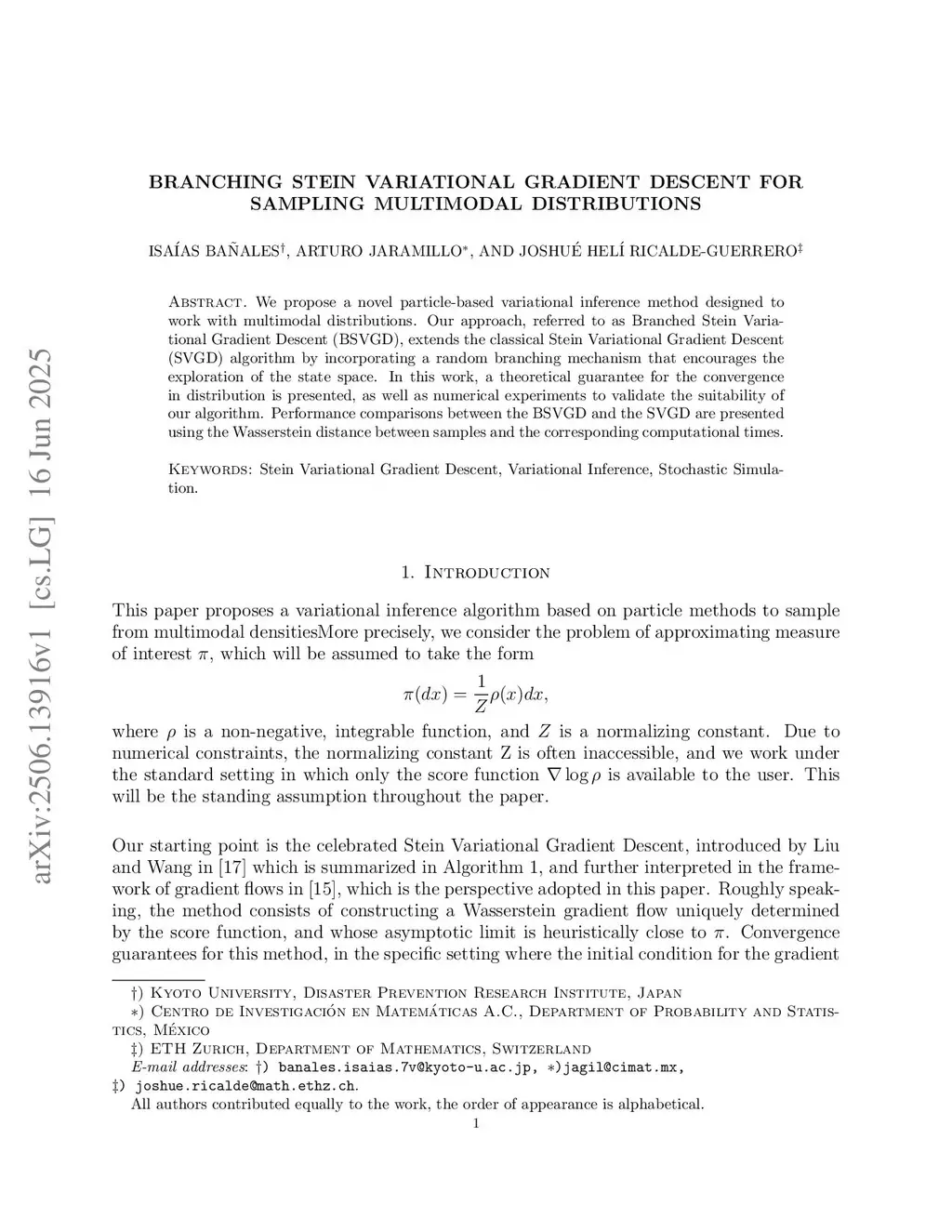 Branching Stein Variational Gradient Descent for sampling multimodal distributions