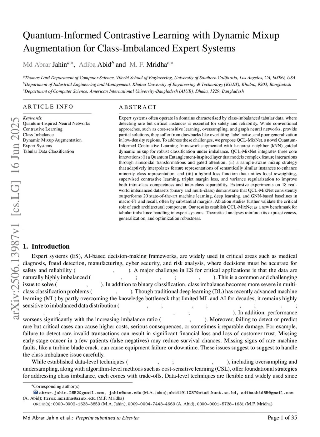 Quantum-Informed Contrastive Learning with Dynamic Mixup Augmentation for Class-Imbalanced Expert Systems