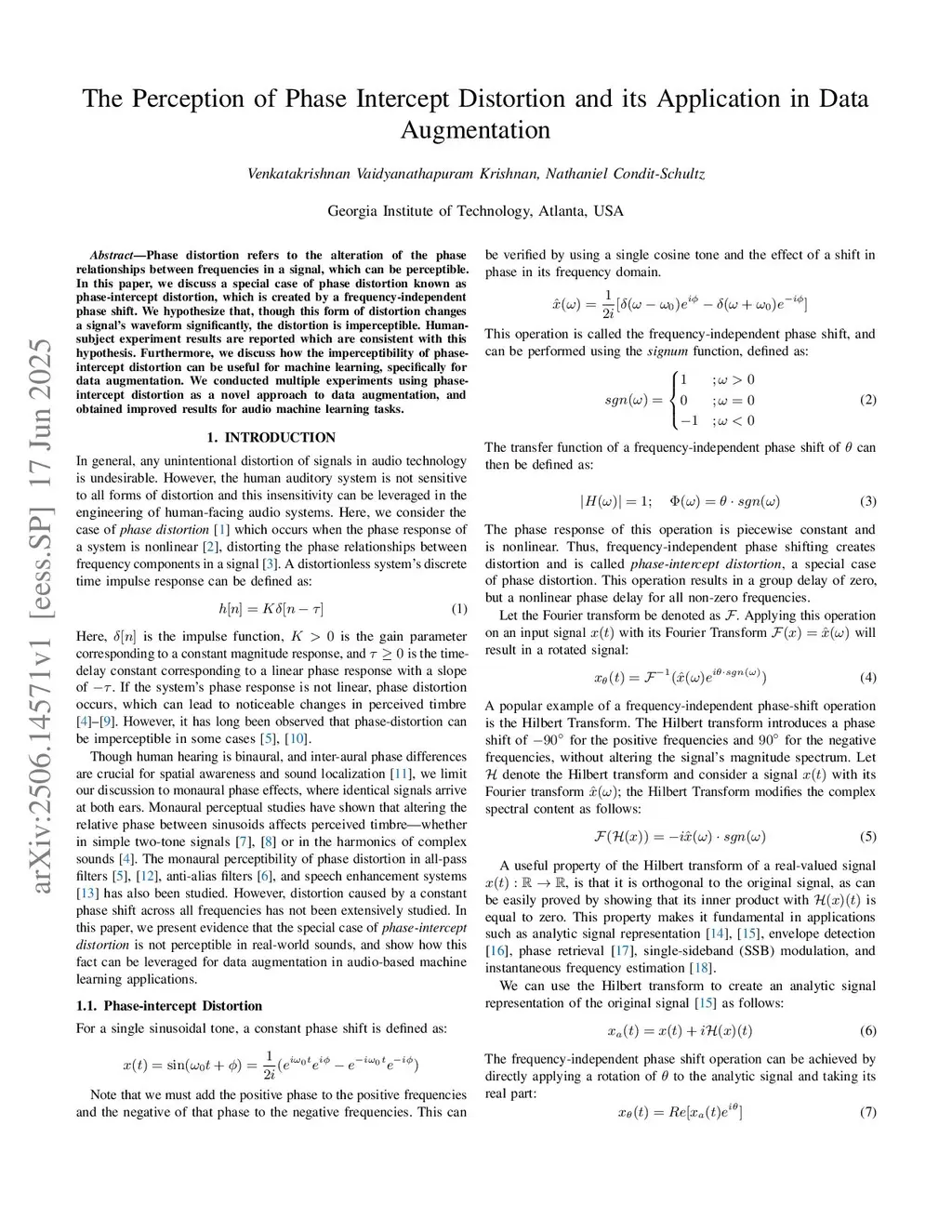 Phase distortion refers to the alteration of the phase relationships between frequencies in a signal, which can be perceptible. In this paper, we discuss a special case of phase distortion known as phase-intercept distortion, which is created by a frequency-independent phase shift. We hypothesize that, though this form of distortion changes a signal's waveform significantly, the distortion is imperceptible. Human-subject experiment results are reported which are consistent with this hypothesis. Furthermore, we discuss how the imperceptibility of phase-intercept distortion can be useful for machine learning, specifically for data augmentation. We conducted multiple experiments using phase-intercept distortion as a novel approach to data augmentation, and obtained improved results for audio machine learning tasks.