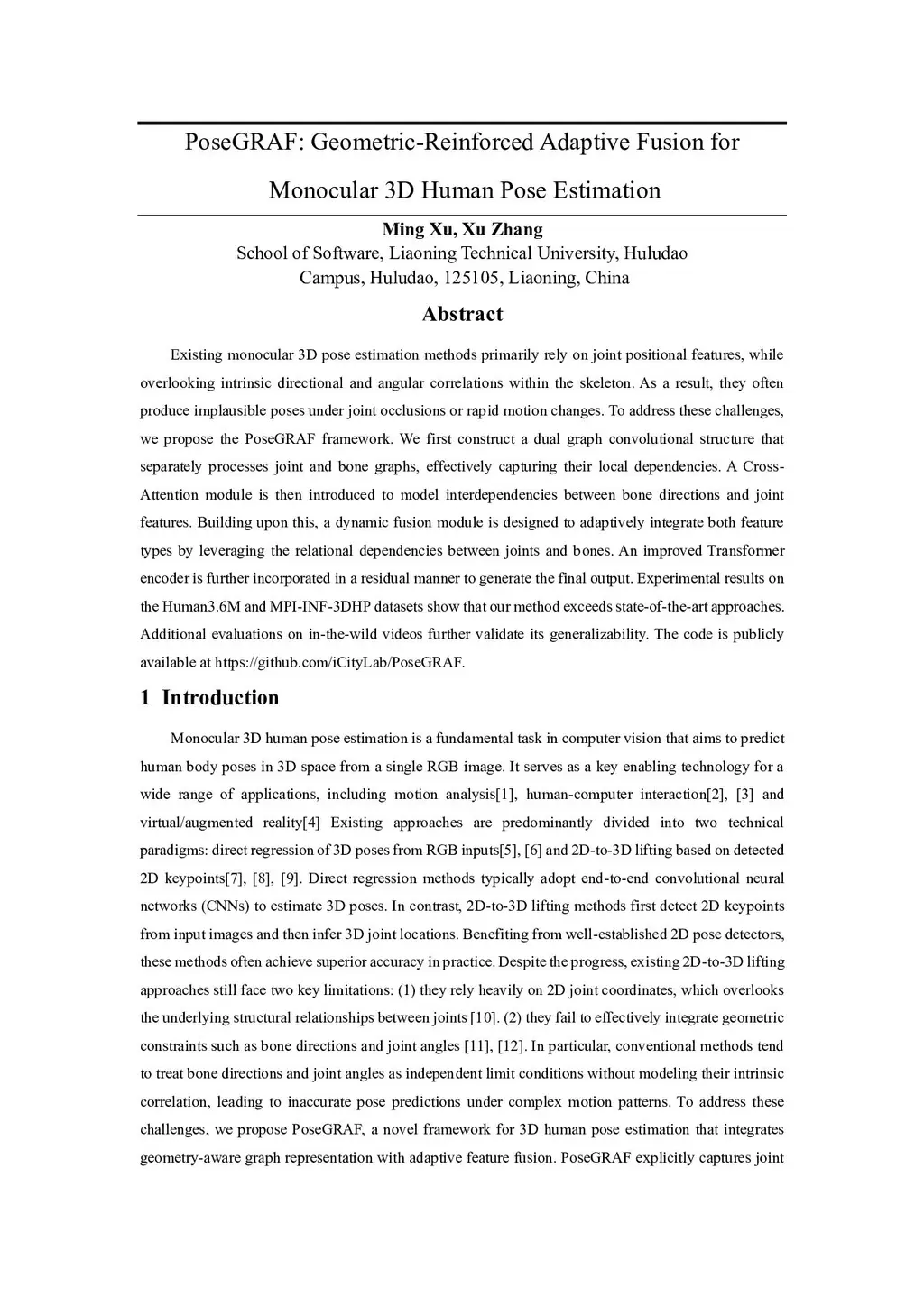 Existing monocular 3D pose estimation methods primarily rely on joint positional features, while overlooking intrinsic directional and angular correlations within the skeleton. As a result, they often produce implausible poses under joint occlusions or rapid motion changes. To address these challenges, we propose the PoseGRAF framework. We first construct a dual graph convolutional structure that separately processes joint and bone graphs, effectively capturing their local dependencies. A Cross-Attention module is then introduced to model interdependencies between bone directions and joint features. Building upon this, a dynamic fusion module is designed to adaptively integrate both feature types by leveraging the relational dependencies between joints and bones. An improved Transformer encoder is further incorporated in a residual manner to generate the final output. Experimental results on the Human3.6M and MPI-INF-3DHP datasets show that our method exceeds state-of-the-art approaches. Additional evaluations on in-the-wild videos further validate its generalizability. The code is publicly available atthis https URL.