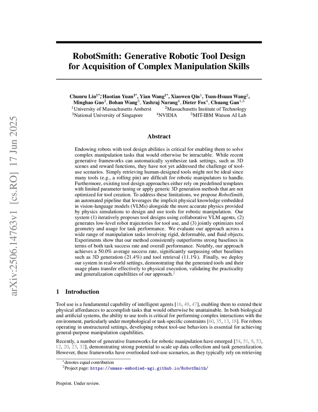 RobotSmith: Generative Robotic Tool Design for Acquisition of Complex Manipulation Skills