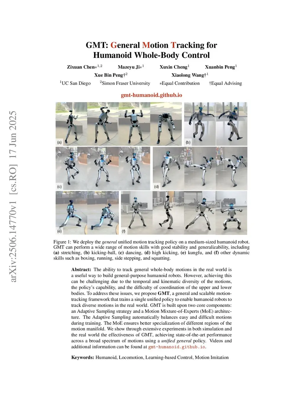 The ability to track general whole-body motions in the real world is a useful way to build general-purpose humanoid robots. However, achieving this can be challenging due to the temporal and kinematic diversity of the motions, the policy's capability, and the difficulty of coordination of the upper and lower bodies. To address these issues, we propose GMT, a general and scalable motion-tracking framework that trains a single unified policy to enable humanoid robots to track diverse motions in the real world. GMT is built upon two core components: an Adaptive Sampling strategy and a Motion Mixture-of-Experts (MoE) architecture. The Adaptive Sampling automatically balances easy and difficult motions during training. The MoE ensures better specialization of different regions of the motion manifold. We show through extensive experiments in both simulation and the real world the effectiveness of GMT, achieving state-of-the-art performance across a broad spectrum of motions using a unified general policy. Videos and additional information can be found atthis https URL.