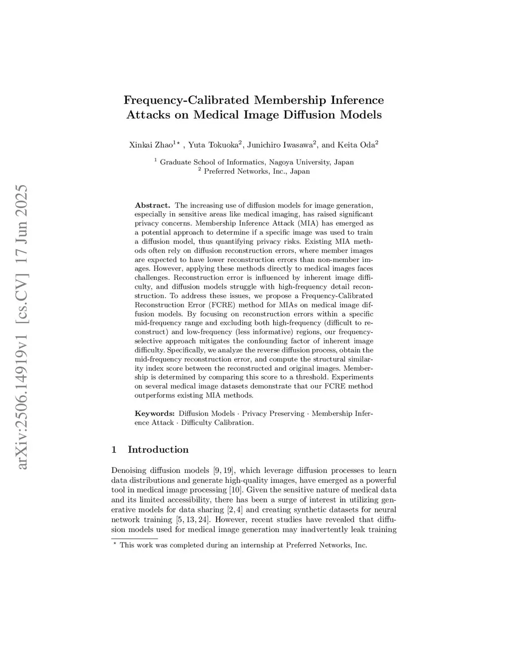 Frequency-Calibrated Membership Inference Attacks on Medical Image Diffusion Models