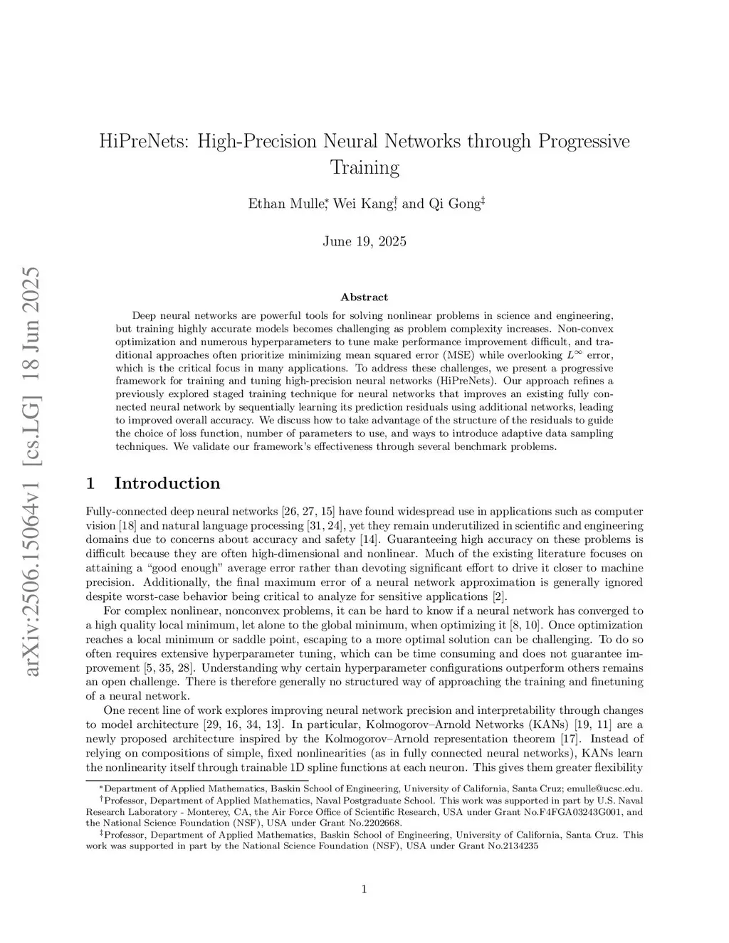 HiPreNets: High-Precision Neural Networks through Progressive Training