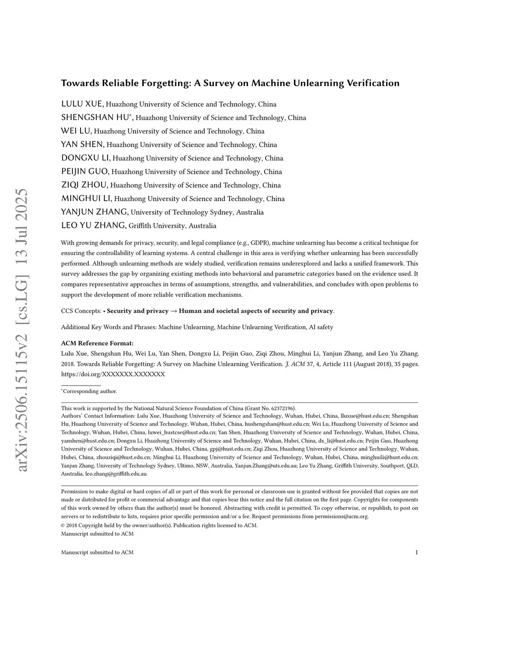 Towards Reliable Forgetting: A Survey on Machine Unlearning Verification