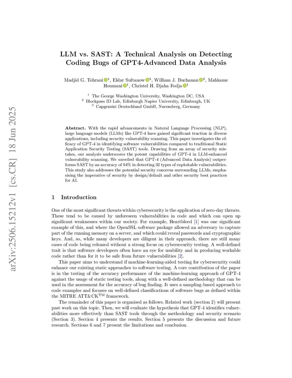 With the rapid advancements in Natural Language Processing (NLP), large language models (LLMs) like GPT-4 have gained significant traction in diverse applications, including security vulnerability scanning. This paper investigates the efficacy of GPT-4 in identifying software vulnerabilities compared to traditional Static Application Security Testing (SAST) tools. Drawing from an array of security mistakes, our analysis underscores the potent capabilities of GPT-4 in LLM-enhanced vulnerability scanning. We unveiled that GPT-4 (Advanced Data Analysis) outperforms SAST by an accuracy of 94% in detecting 32 types of exploitable vulnerabilities. This study also addresses the potential security concerns surrounding LLMs, emphasising the imperative of security by design/default and other security best practices for AI.