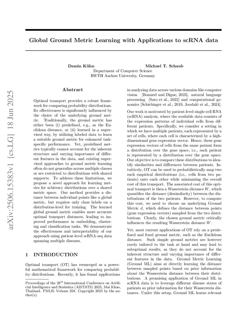 Global Ground Metric Learning with Applications to scRNA data