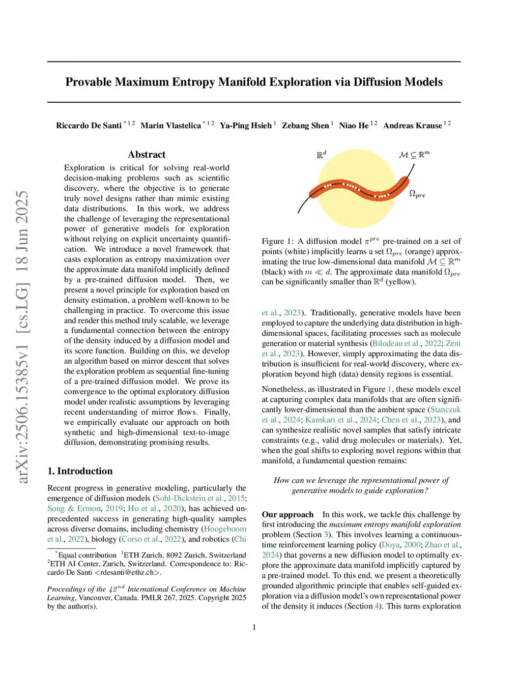 Provable Maximum Entropy Manifold Exploration via Diffusion Models