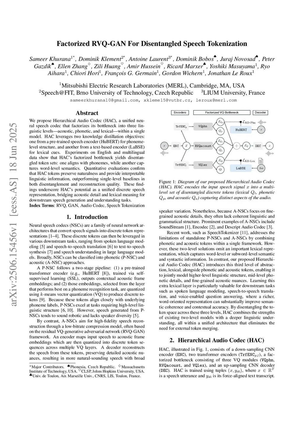 Factorized RVQ-GAN For Disentangled Speech Tokenization