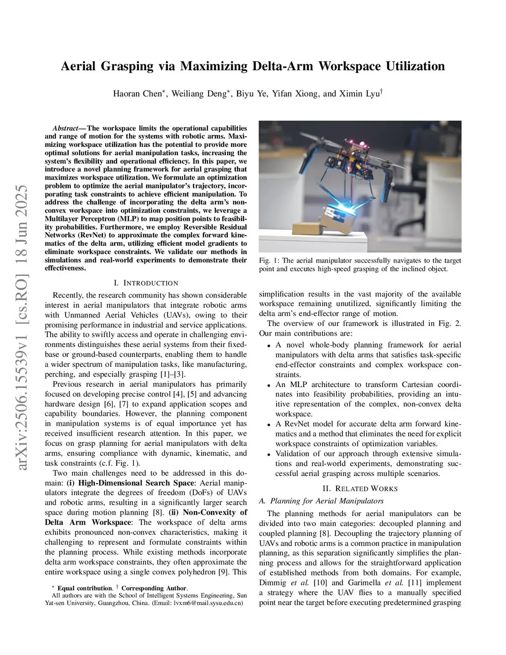 The workspace limits the operational capabilities and range of motion for the systems with robotic arms. Maximizing workspace utilization has the potential to provide more optimal solutions for aerial manipulation tasks, increasing the system's flexibility and operational efficiency. In this paper, we introduce a novel planning framework for aerial grasping that maximizes workspace utilization. We formulate an optimization problem to optimize the aerial manipulator's trajectory, incorporating task constraints to achieve efficient manipulation. To address the challenge of incorporating the delta arm's non-convex workspace into optimization constraints, we leverage a Multilayer Perceptron (MLP) to map position points to feasibilitythis http URL, we employ Reversible Residual Networks (RevNet) to approximate the complex forward kinematics of the delta arm, utilizing efficient model gradients to eliminate workspace constraints. We validate our methods in simulations and real-world experiments to demonstrate their effectiveness.