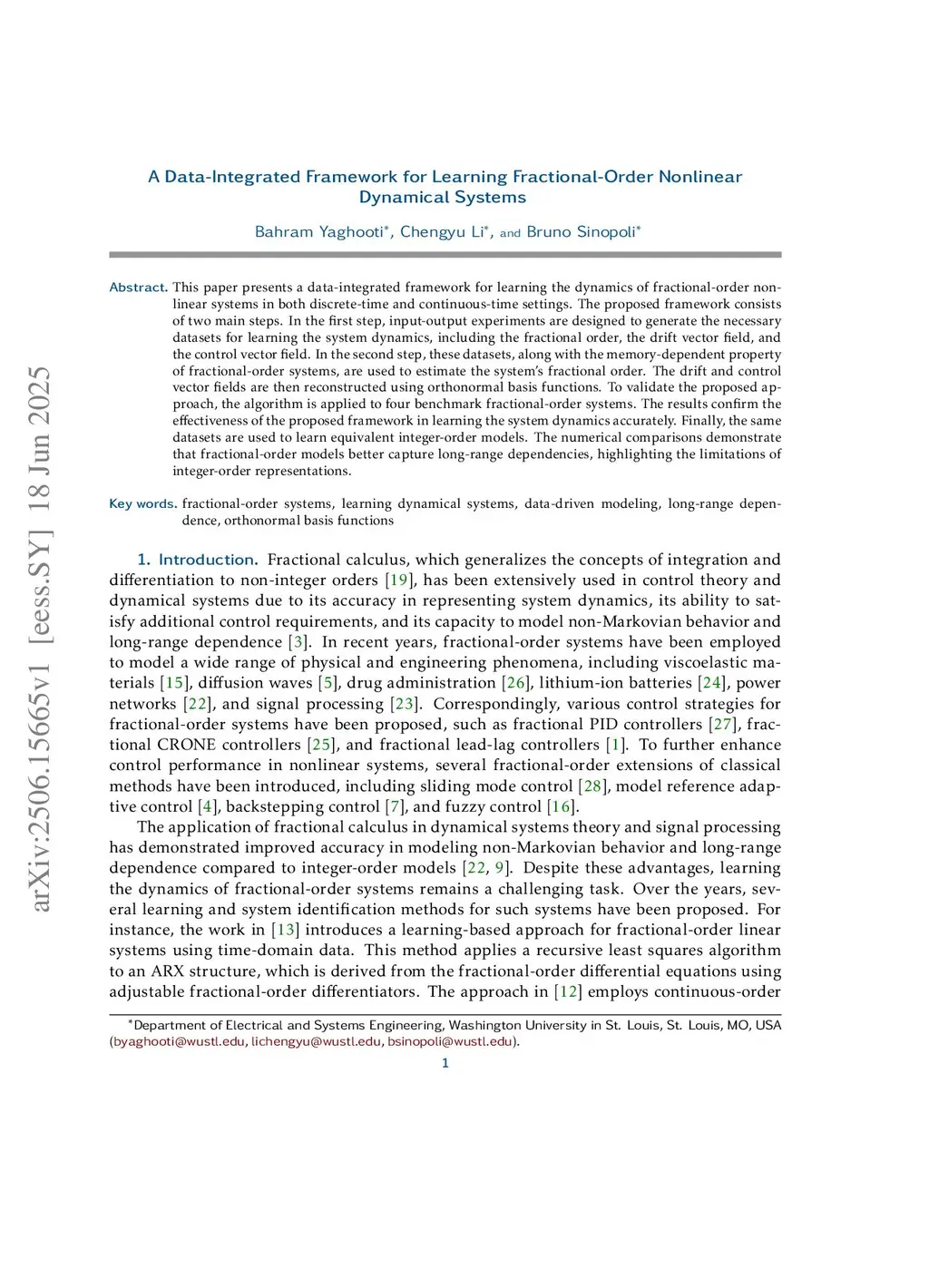 This paper presents a data-integrated framework for learning the dynamics of fractional-order nonlinear systems in both discrete-time and continuous-time settings. The proposed framework consists of two main steps. In the first step, input-output experiments are designed to generate the necessary datasets for learning the system dynamics, including the fractional order, the drift vector field, and the control vector field. In the second step, these datasets, along with the memory-dependent property of fractional-order systems, are used to estimate the system's fractional order. The drift and control vector fields are then reconstructed using orthonormal basis functions. To validate the proposed approach, the algorithm is applied to four benchmark fractional-order systems. The results confirm the effectiveness of the proposed framework in learning the system dynamics accurately. Finally, the same datasets are used to learn equivalent integer-order models. The numerical comparisons demonstrate that fractional-order models better capture long-range dependencies, highlighting the limitations of integer-order representations.