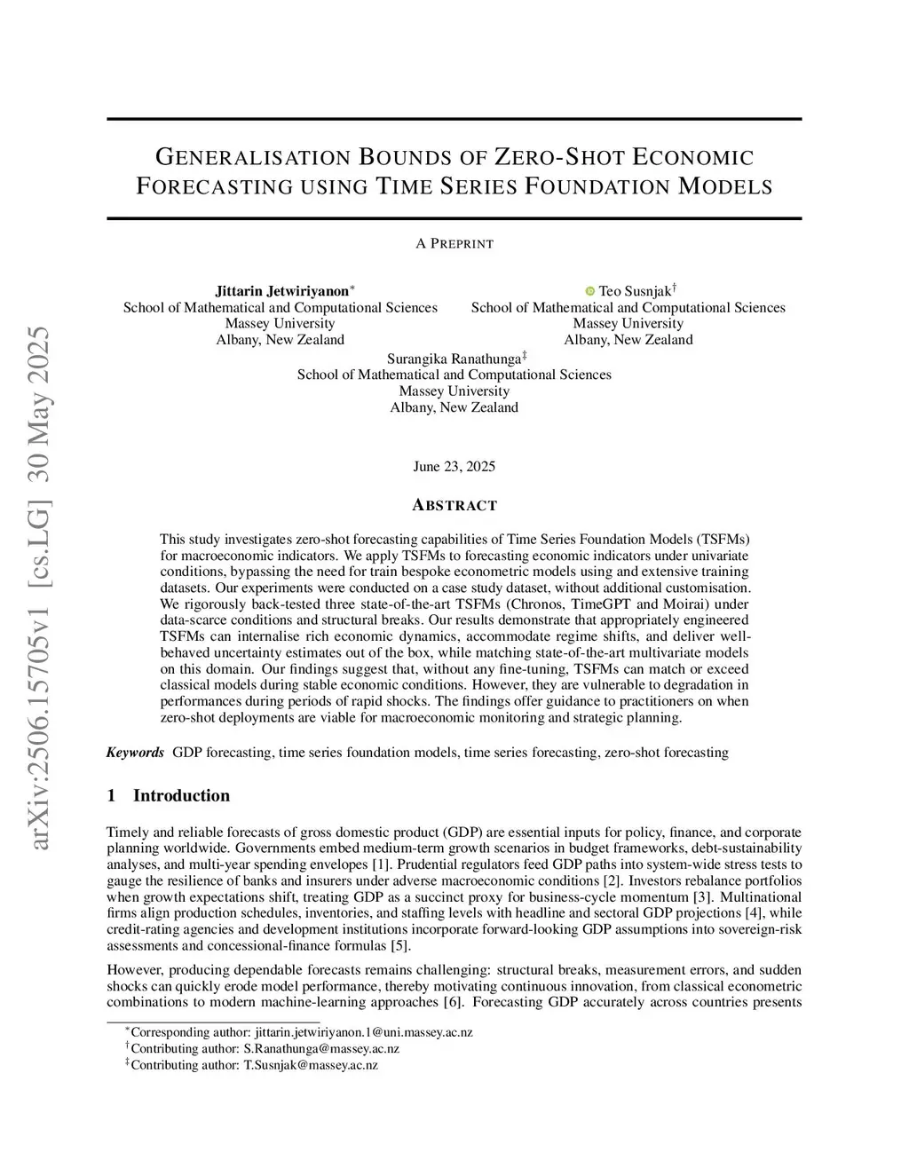 Generalisation Bounds of Zero-Shot Economic Forecasting using Time Series Foundation Models
