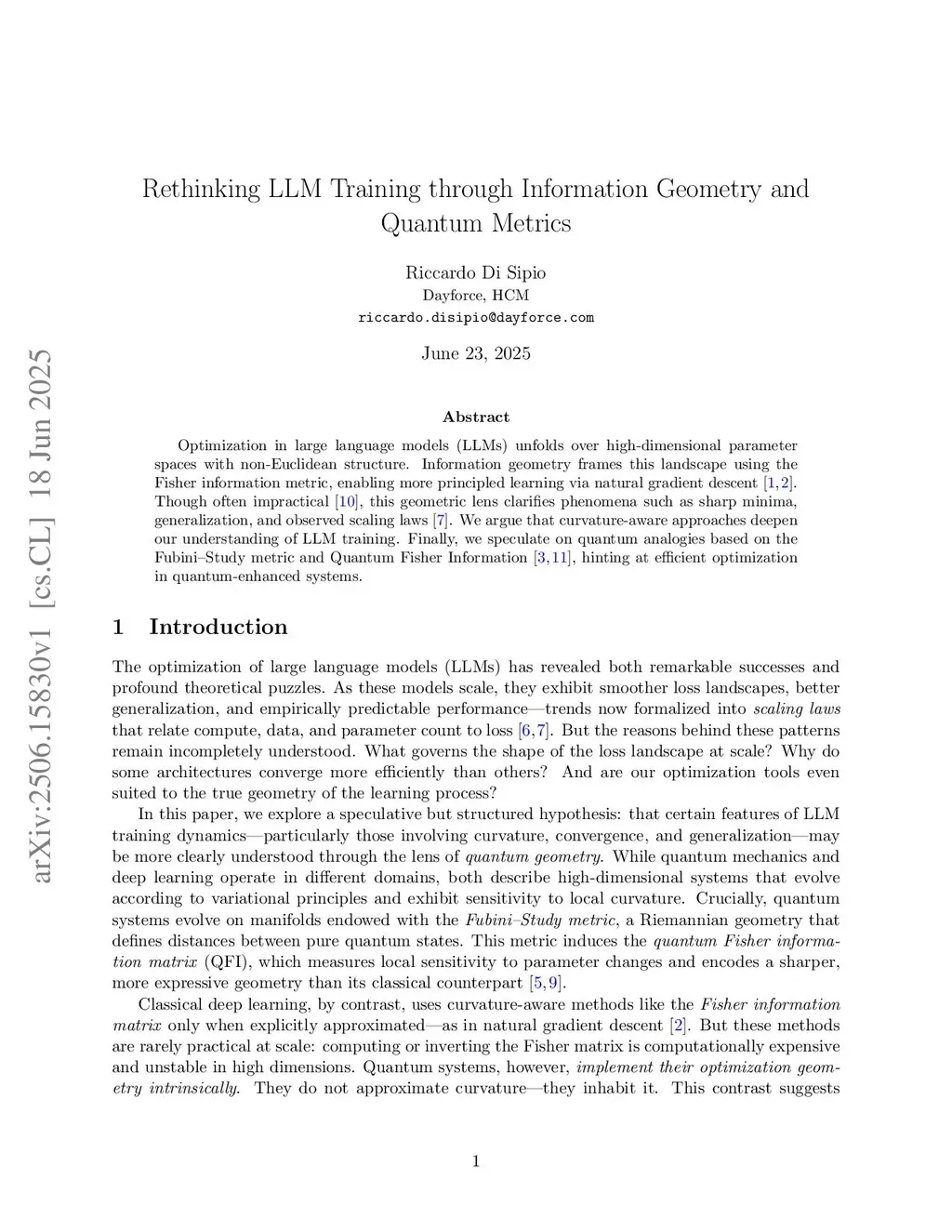Rethinking LLM Training through Information Geometry and Quantum Metrics