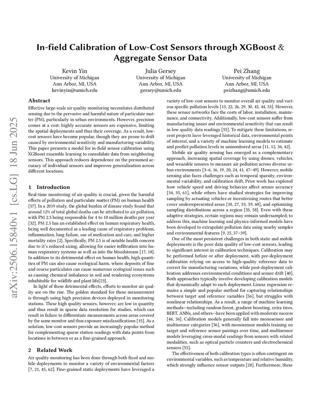 Effective large-scale air quality monitoring necessitates distributed sensing due to the pervasive and harmful nature of particulate matter (PM), particularly in urban environments. However, precision comes at a cost: highly accurate sensors are expensive, limiting the spatial deployments and thus their coverage. As a result, low-cost sensors have become popular, though they are prone to drift caused by environmental sensitivity and manufacturing variability. This paper presents a model for in-field sensor calibration using XGBoost ensemble learning to consolidate data from neighboring sensors. This approach reduces dependence on the presumed accuracy of individual sensors and improves generalization across different locations.