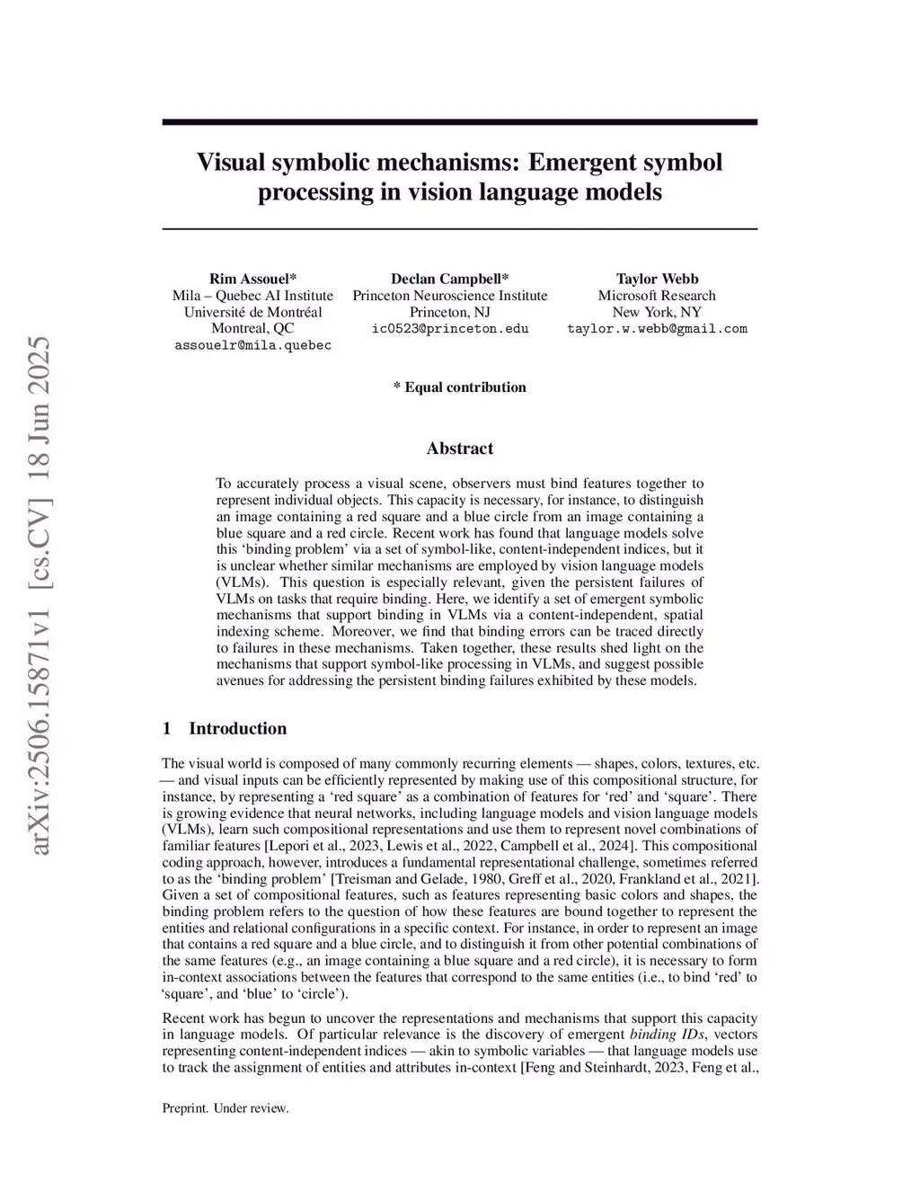 Visual symbolic mechanisms: Emergent symbol processing in vision language models