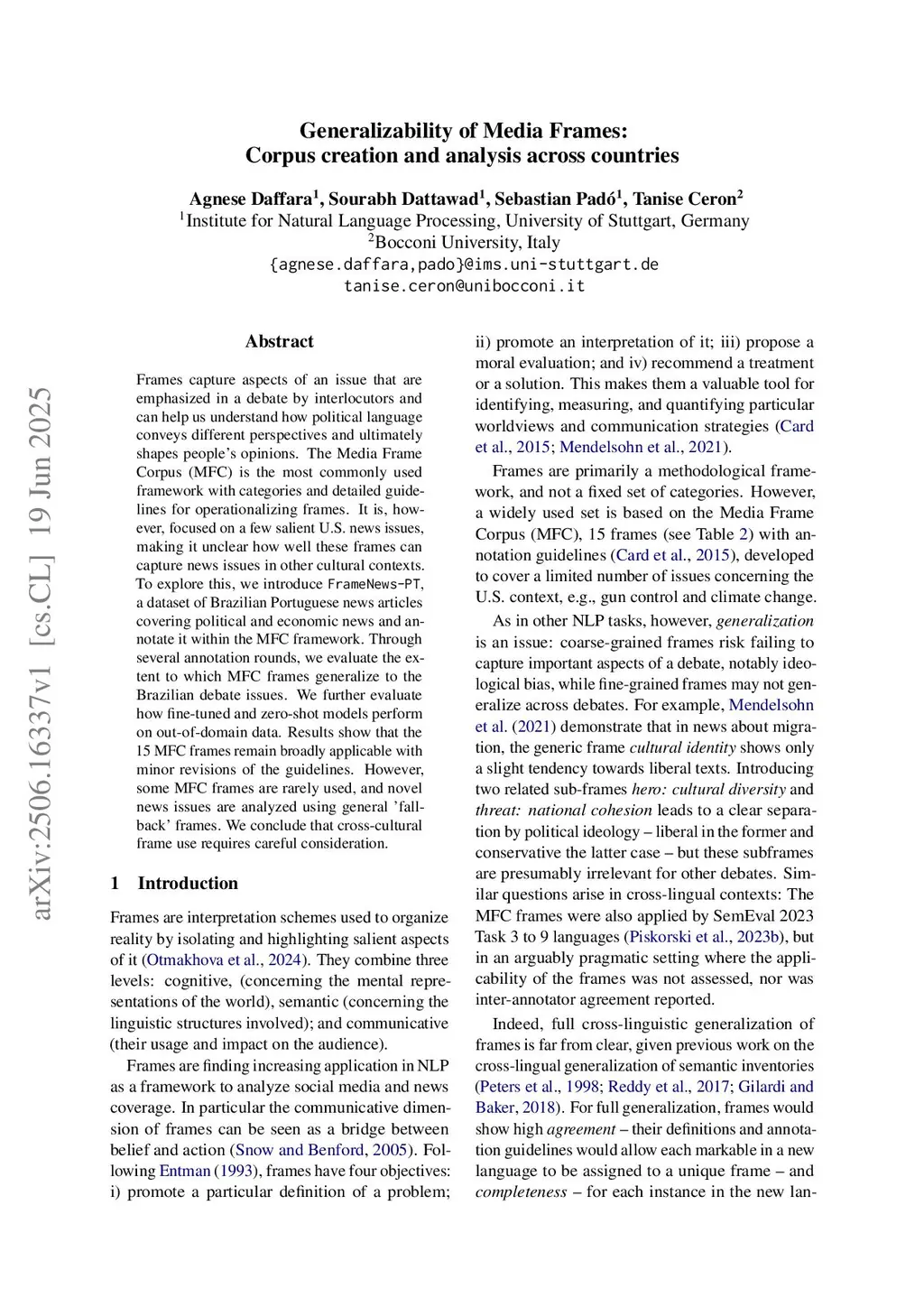 Generalizability of Media Frames: Corpus creation and analysis across countries