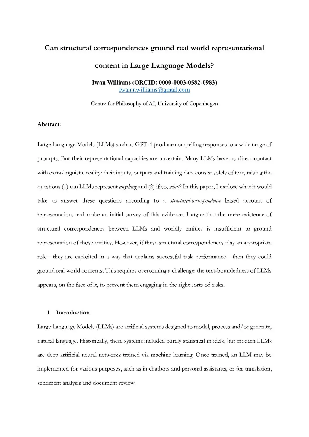 Large Language Models (LLMs) such as GPT-4 produce compelling responses to a wide range of prompts. But their representational capacities are uncertain. Many LLMs have no direct contact with extra-linguistic reality: their inputs, outputs and training data consist solely of text, raising the questions (1) can LLMs represent anything and (2) if so, what? In this paper, I explore what it would take to answer these questions according to a structural-correspondence based account of representation, and make an initial survey of this evidence. I argue that the mere existence of structural correspondences between LLMs and worldly entities is insufficient to ground representation of those entities. However, if these structural correspondences play an appropriate role - they are exploited in a way that explains successful task performance - then they could ground real world contents. This requires overcoming a challenge: the text-boundedness of LLMs appears, on the face of it, to prevent them engaging in the right sorts of tasks.