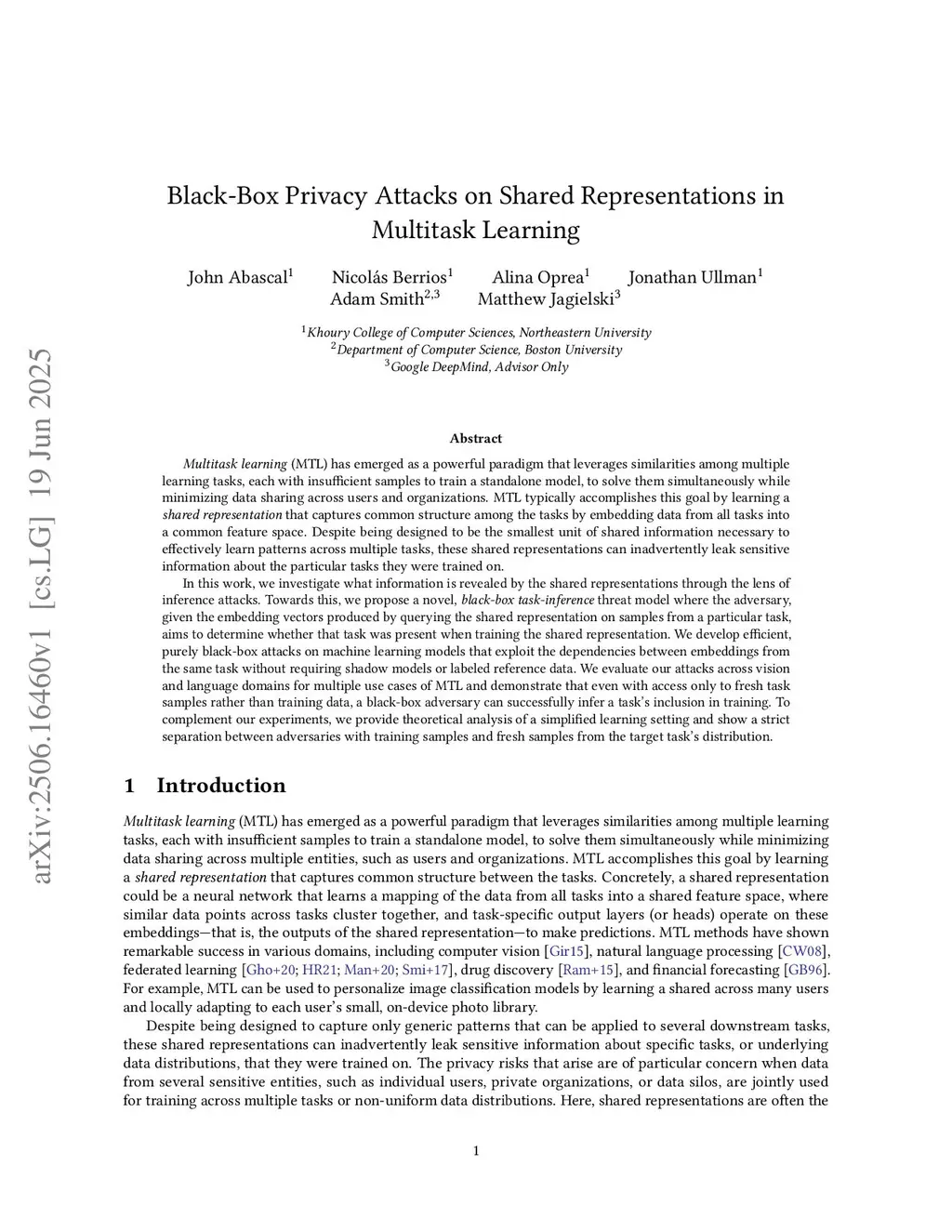 Black-Box Privacy Attacks on Shared Representations in Multitask Learning