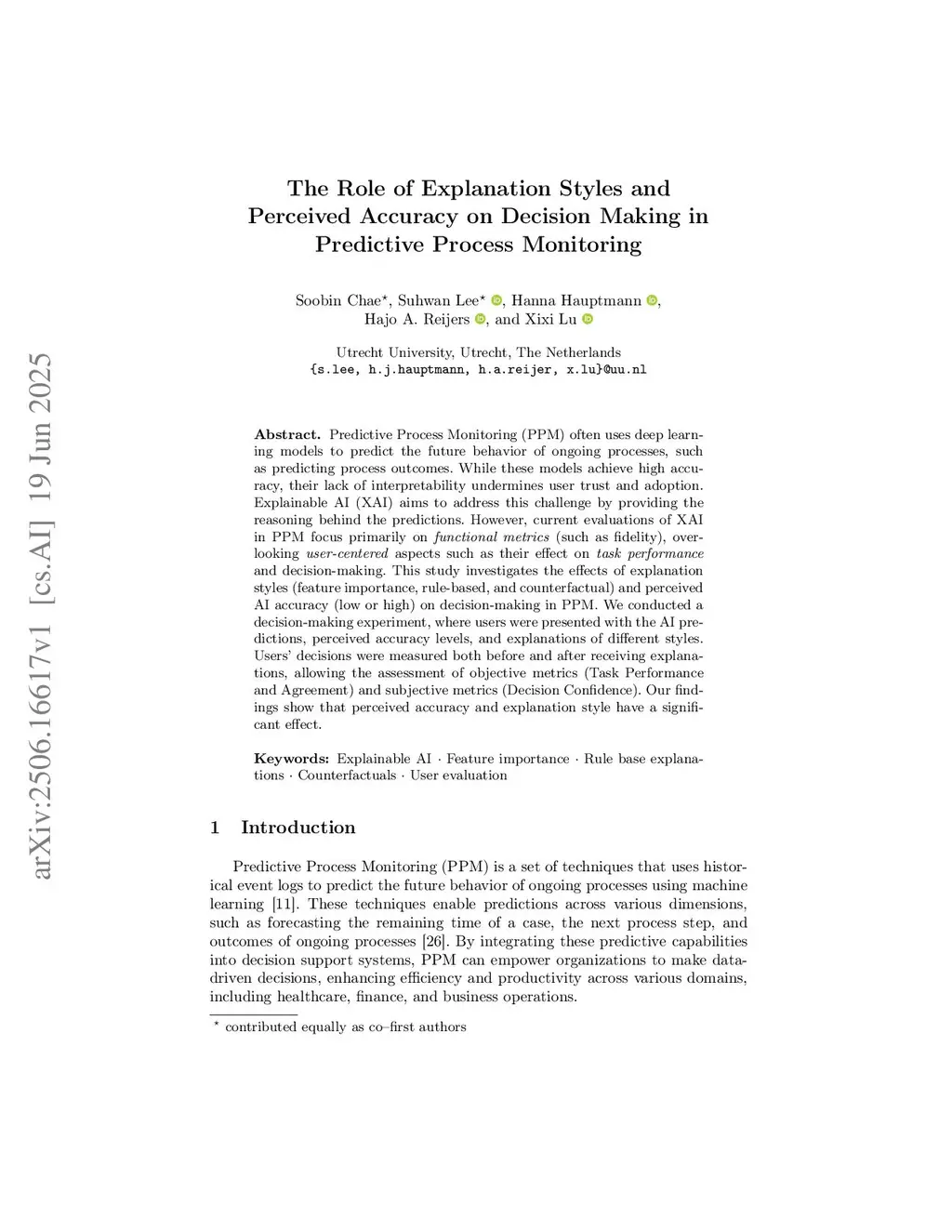 The Role of Explanation Styles and Perceived Accuracy on Decision Making in Predictive Process Monitoring