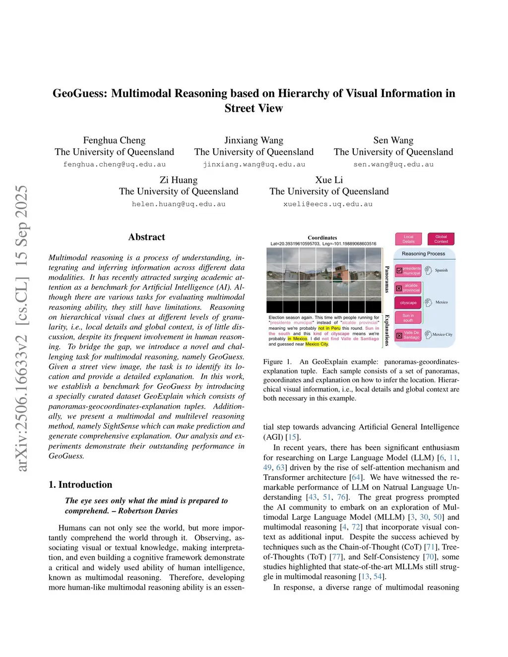 GeoGuess: Multimodal Reasoning based on Hierarchy of Visual Information in Street View